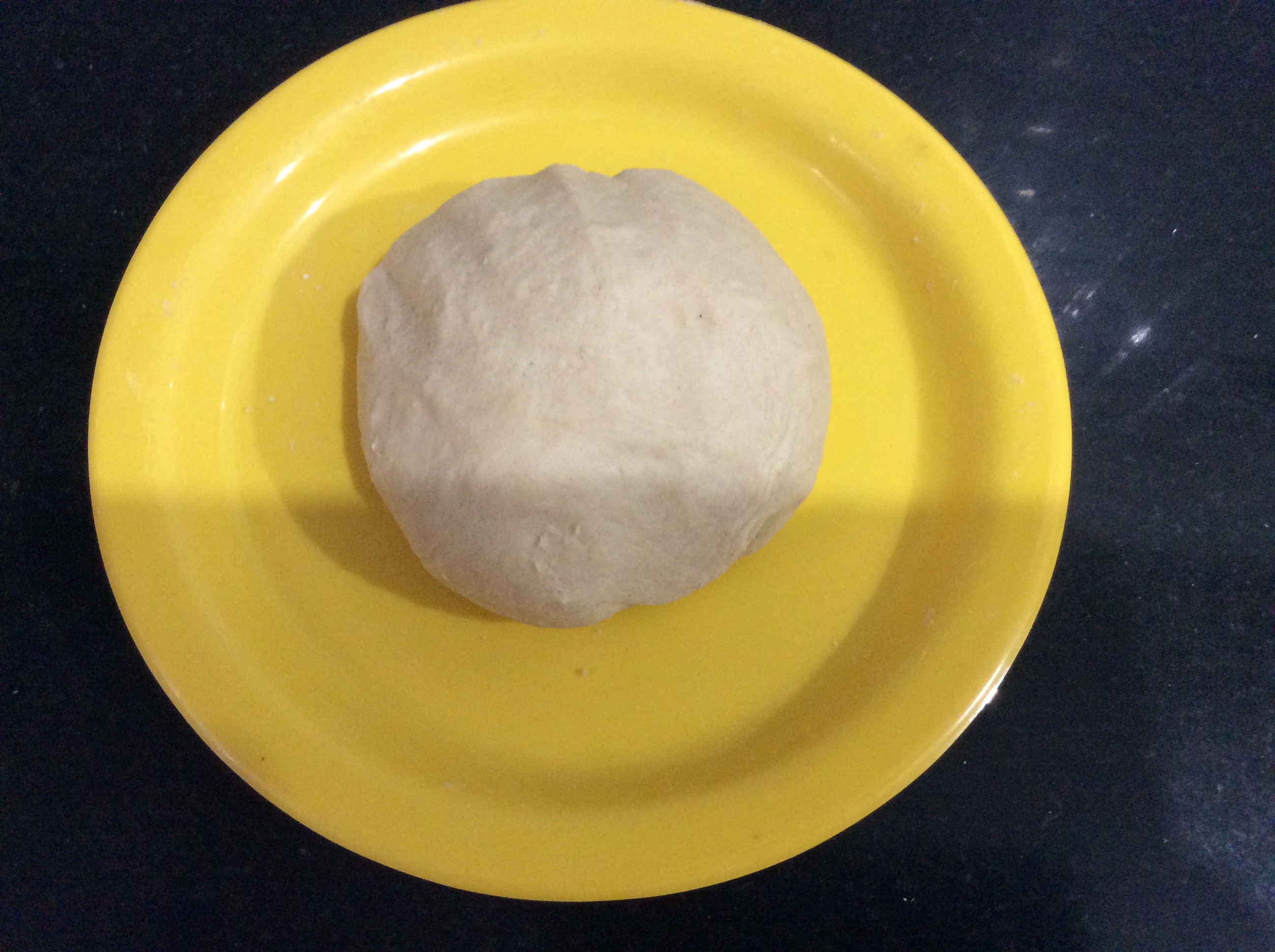 - Spread the dough on a plate and press with your fingers, now add little water to it and keep covered for about 15 minutes.