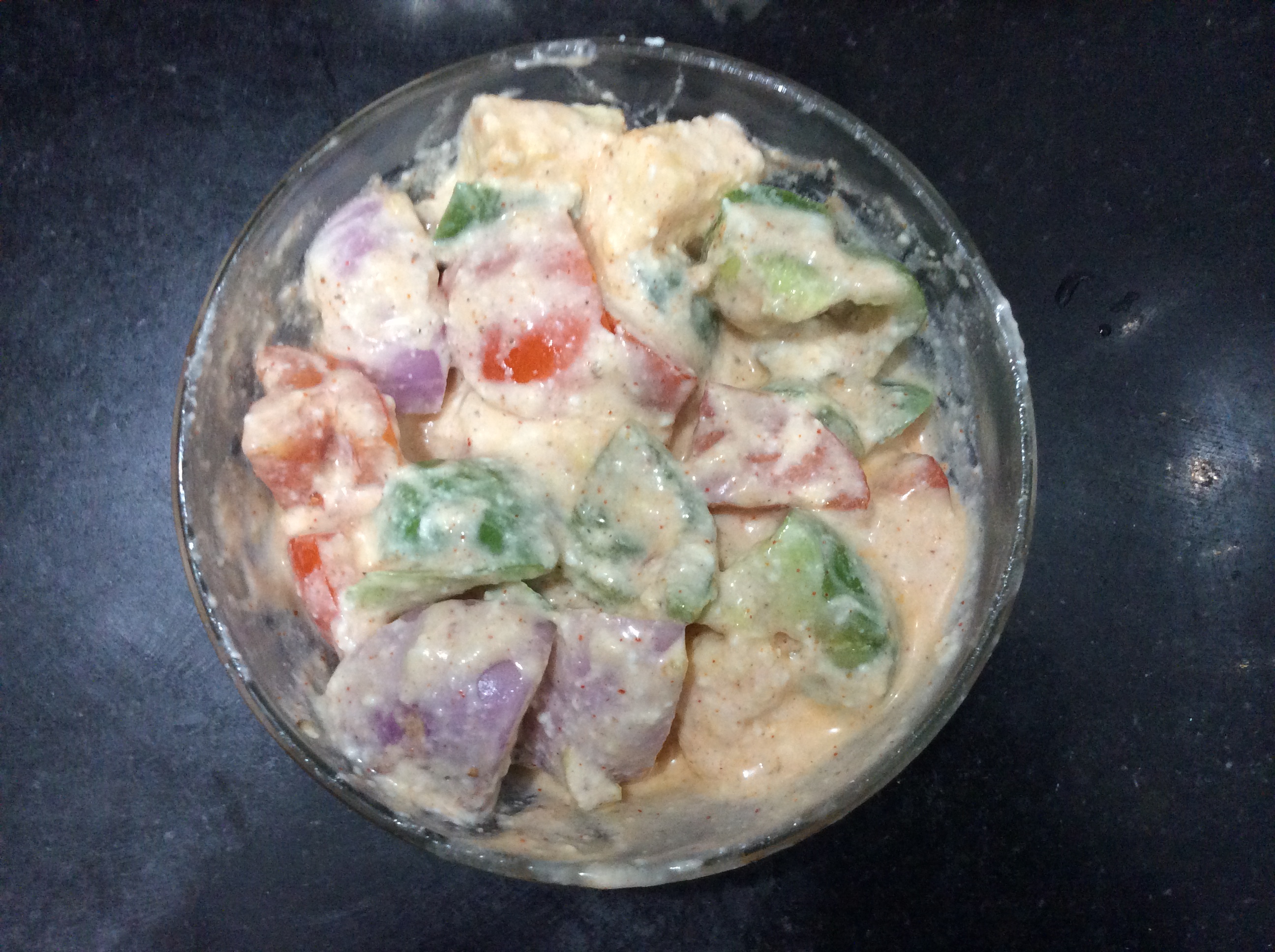 17)MARINATE; It means to saturate the food by immersing food in an acidic-based liquid or dry rub to tenderize and add flavor before cooking. For example vegs are marinated before making Tikka.