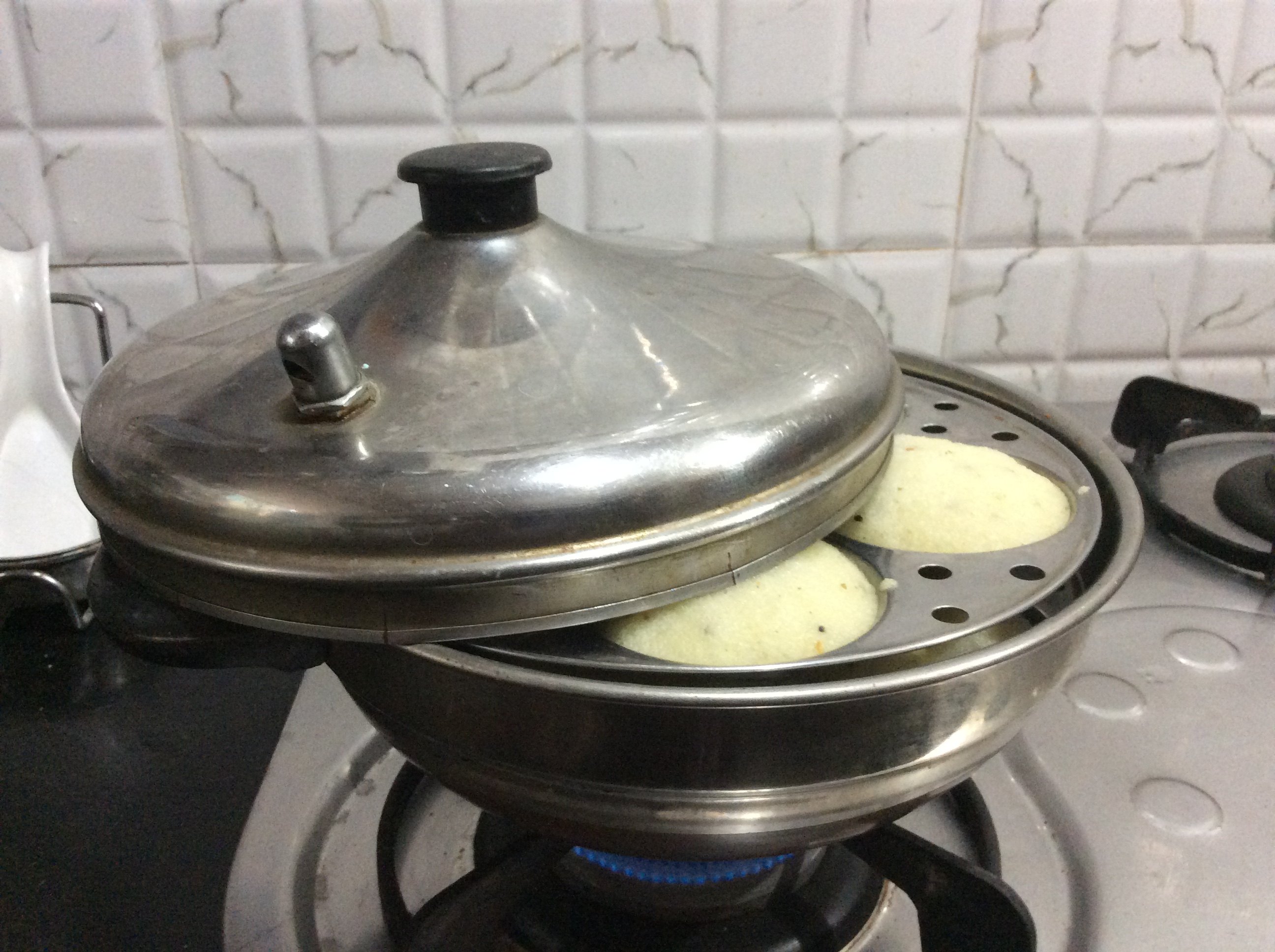 3)STEAMING; It means food is cooked in a steamer basket or on a rack, which is placed in a covered pan of boiling water. By this method of cooking the flavor of food and its nutrients are retained. An example is Idly, Dhokla, etc.