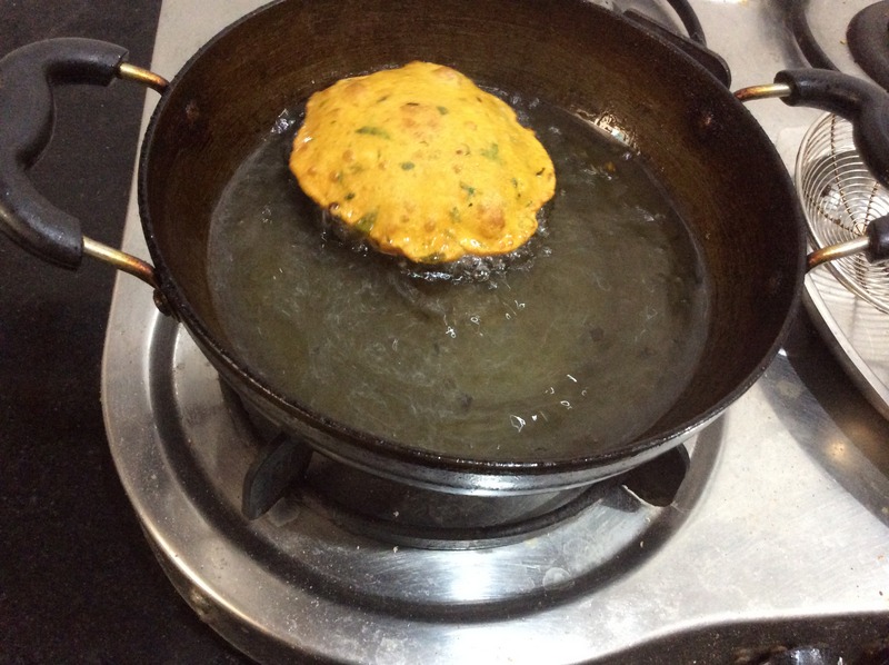 14)SHALLOW FRY; It means to cook food in a shallow skillet with less quantity of oil just enough to cover less than 1/4 of its height after one side is done it is flipped for the other side to cook. Examples; Aloo tikki, Pathra, etc.