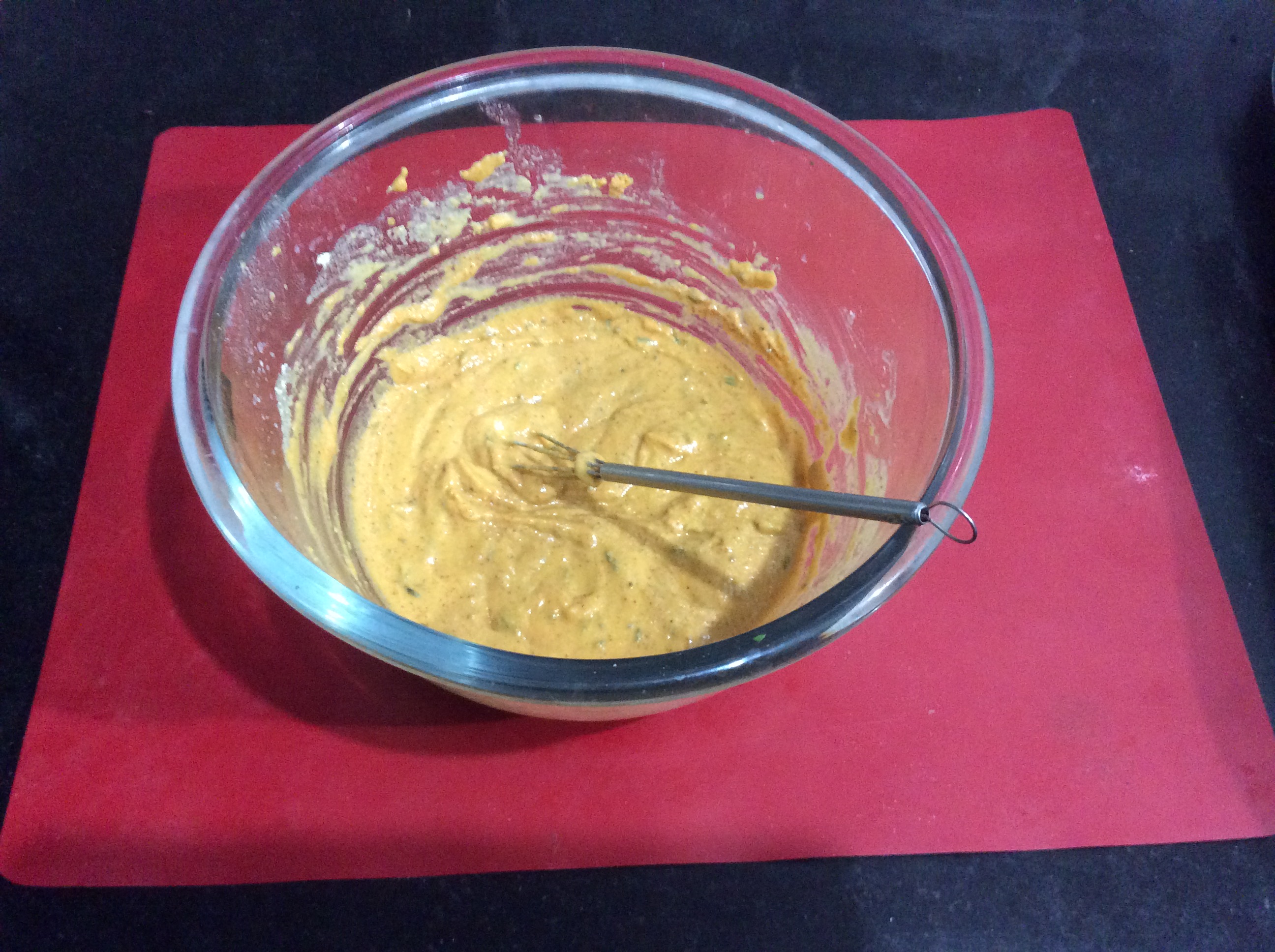 3. Start adding water slowly and mix with a whisk or a spatula, so that no lumps remain.