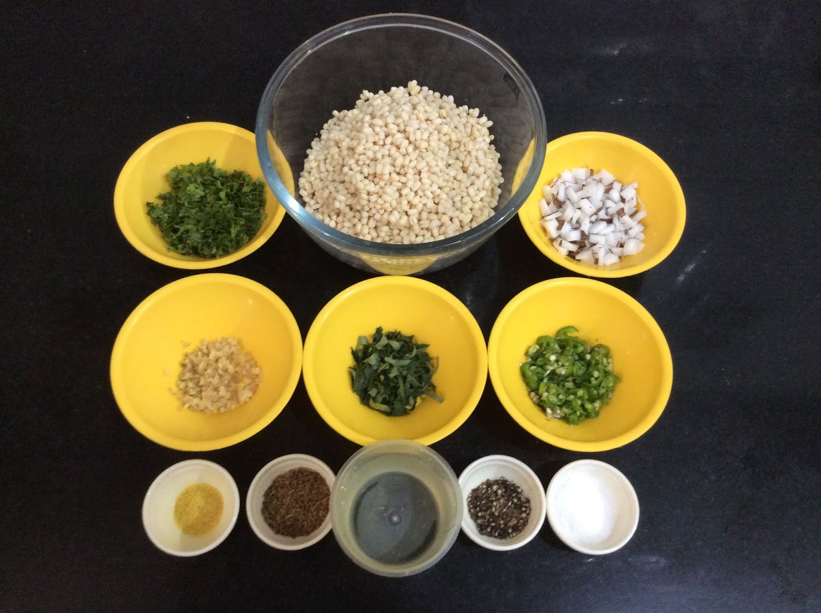 - Now add green chilies, curry leaves, coriander leaves, grated ginger and cut fresh coconut.
