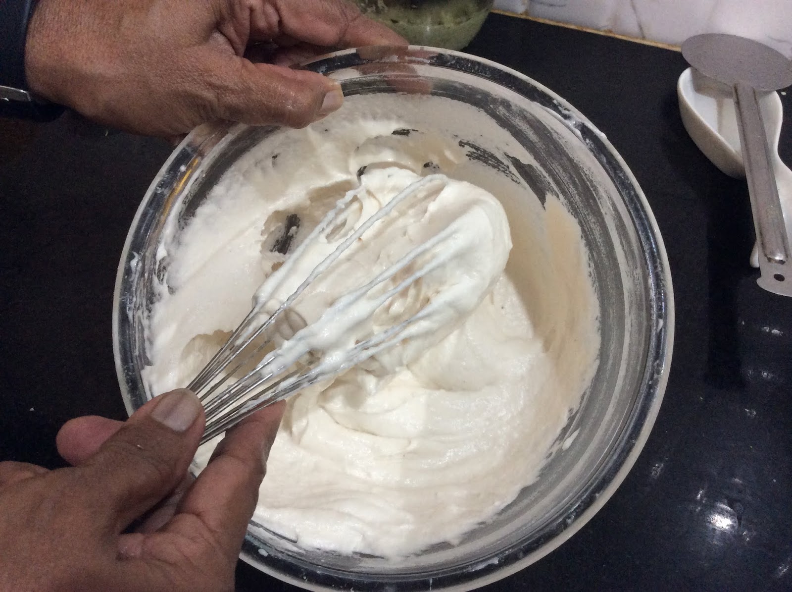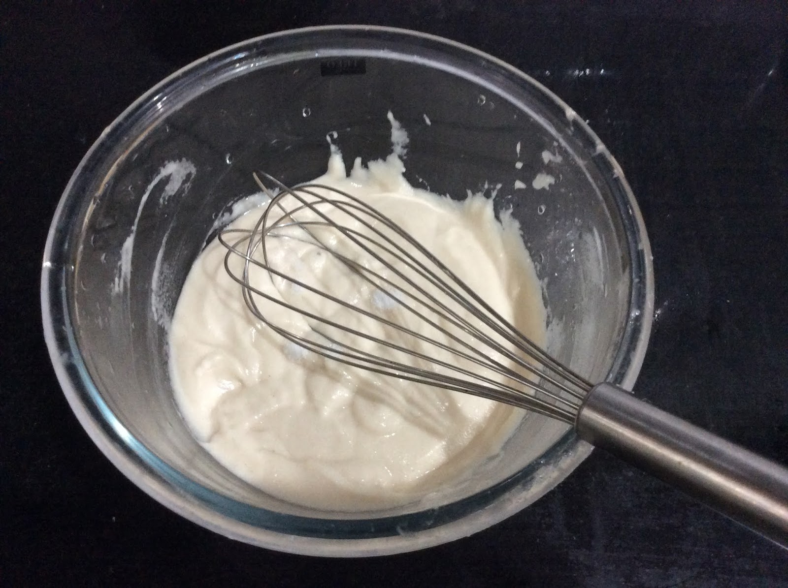 - Now beat the batter with a spatula or whisk, till you get a soft white butter-like textured shining batter.