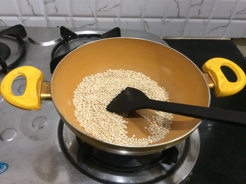 - Put 1 cup of urad dal and dry roast till it changes its color and starts giving a nice aroma. Keep aside.