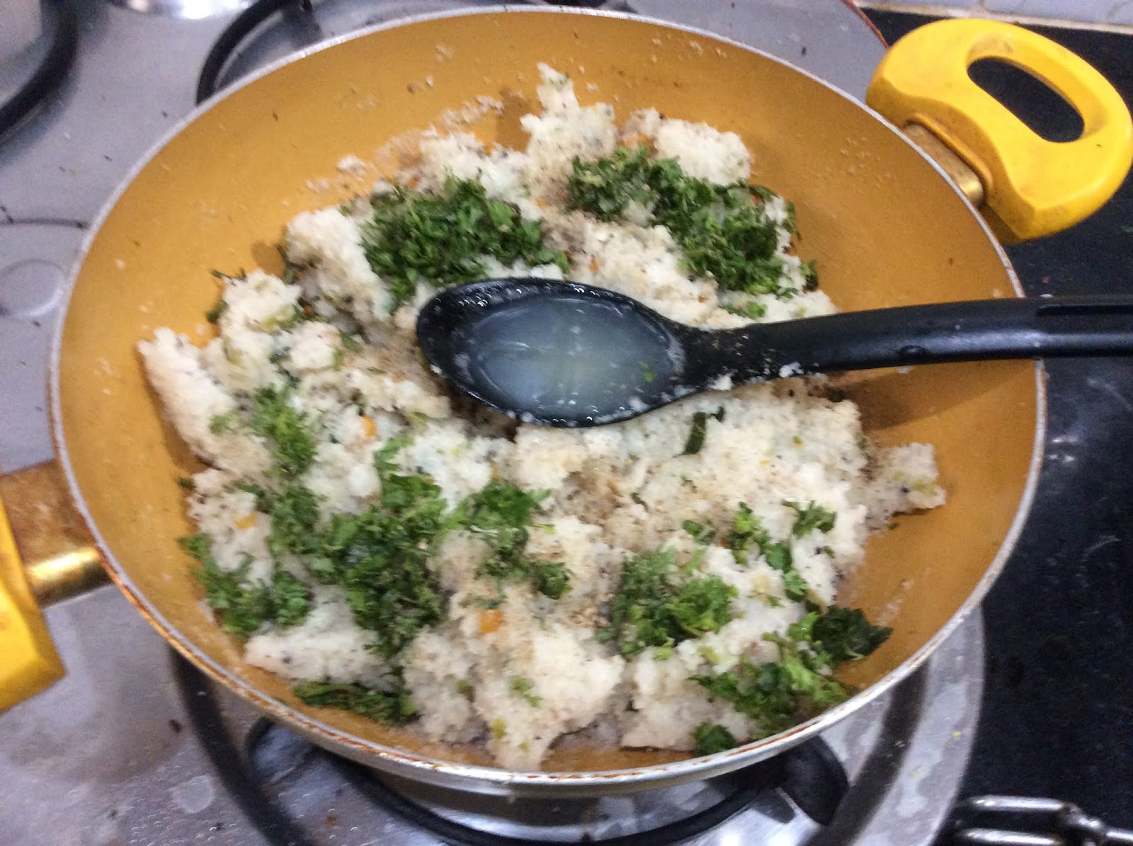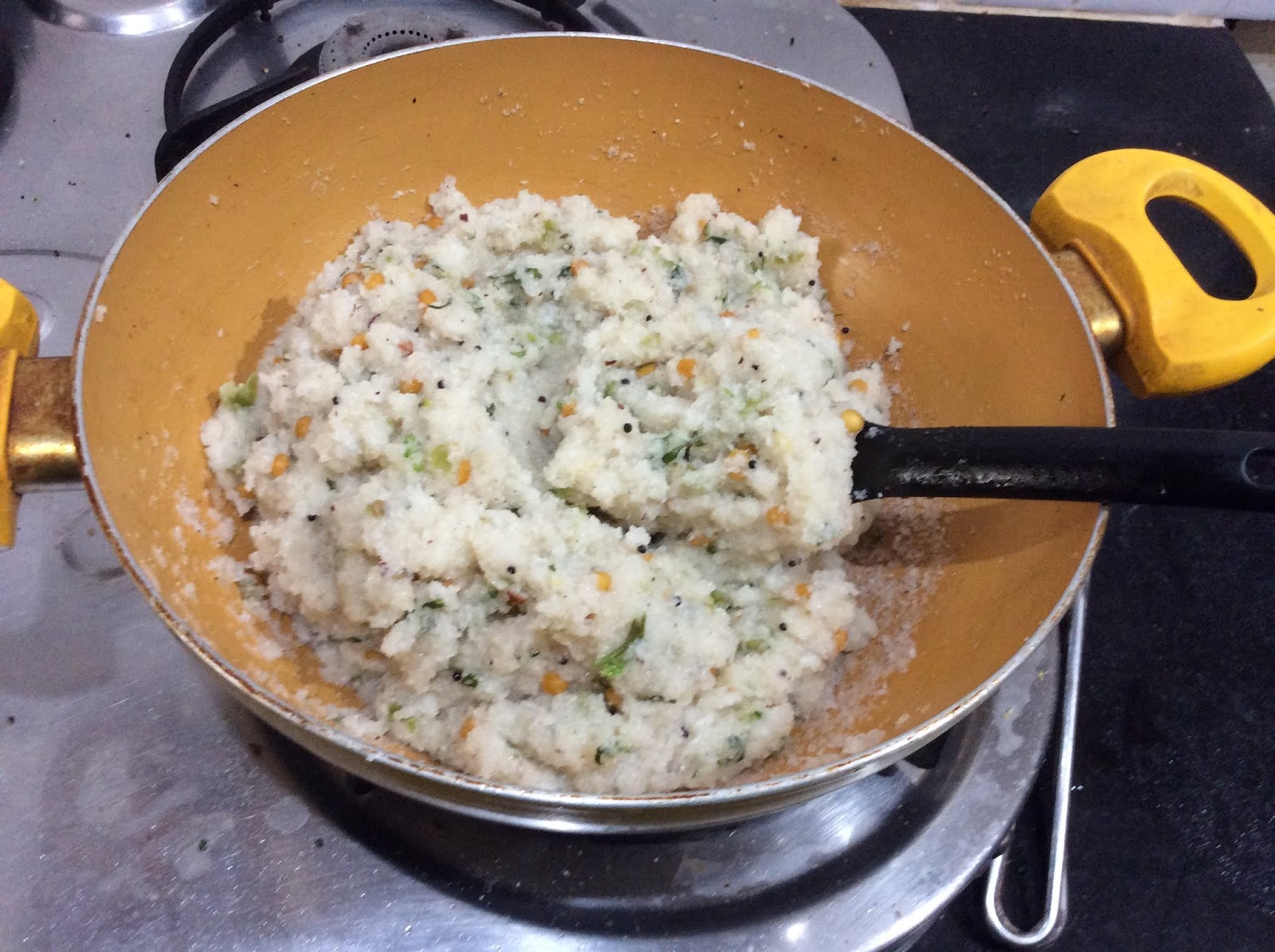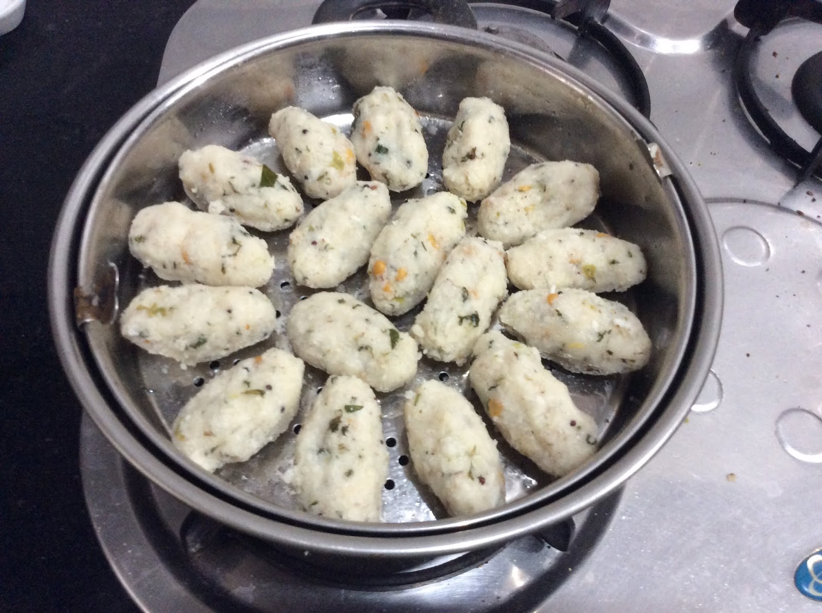 HOT, YUMMY, SOFT, SPICY, AND A VERY HEALTHY, TASTY STEAMED RICE RAVA KADABU  IS READY TO SERVE. EAT AND ENJOY