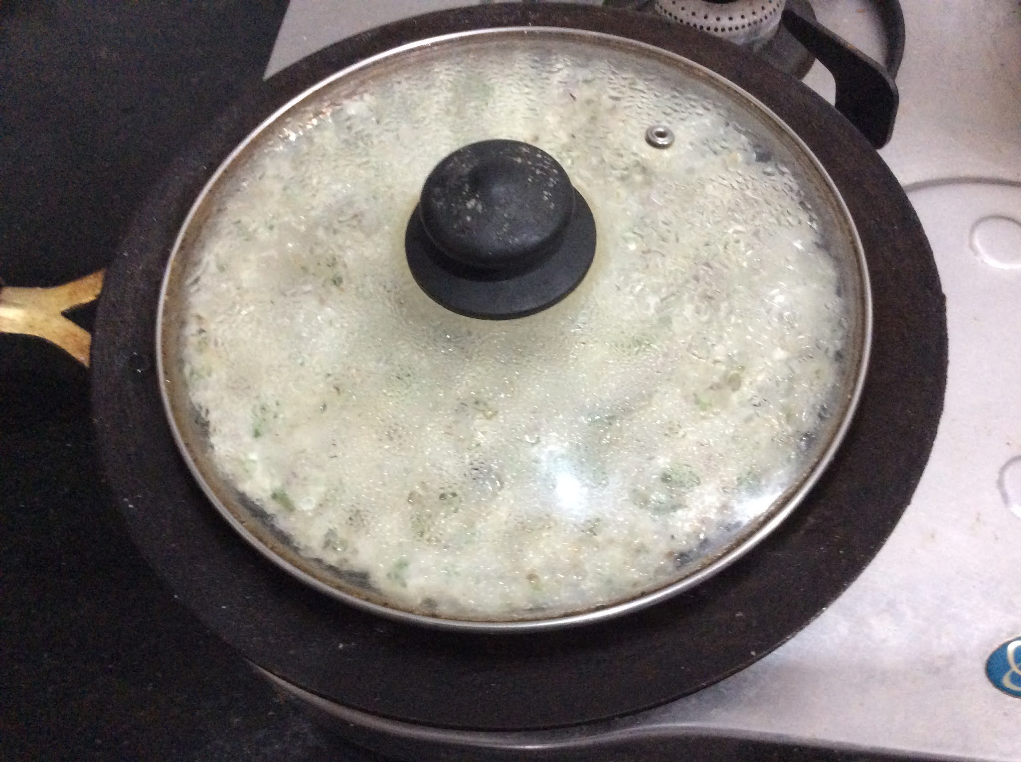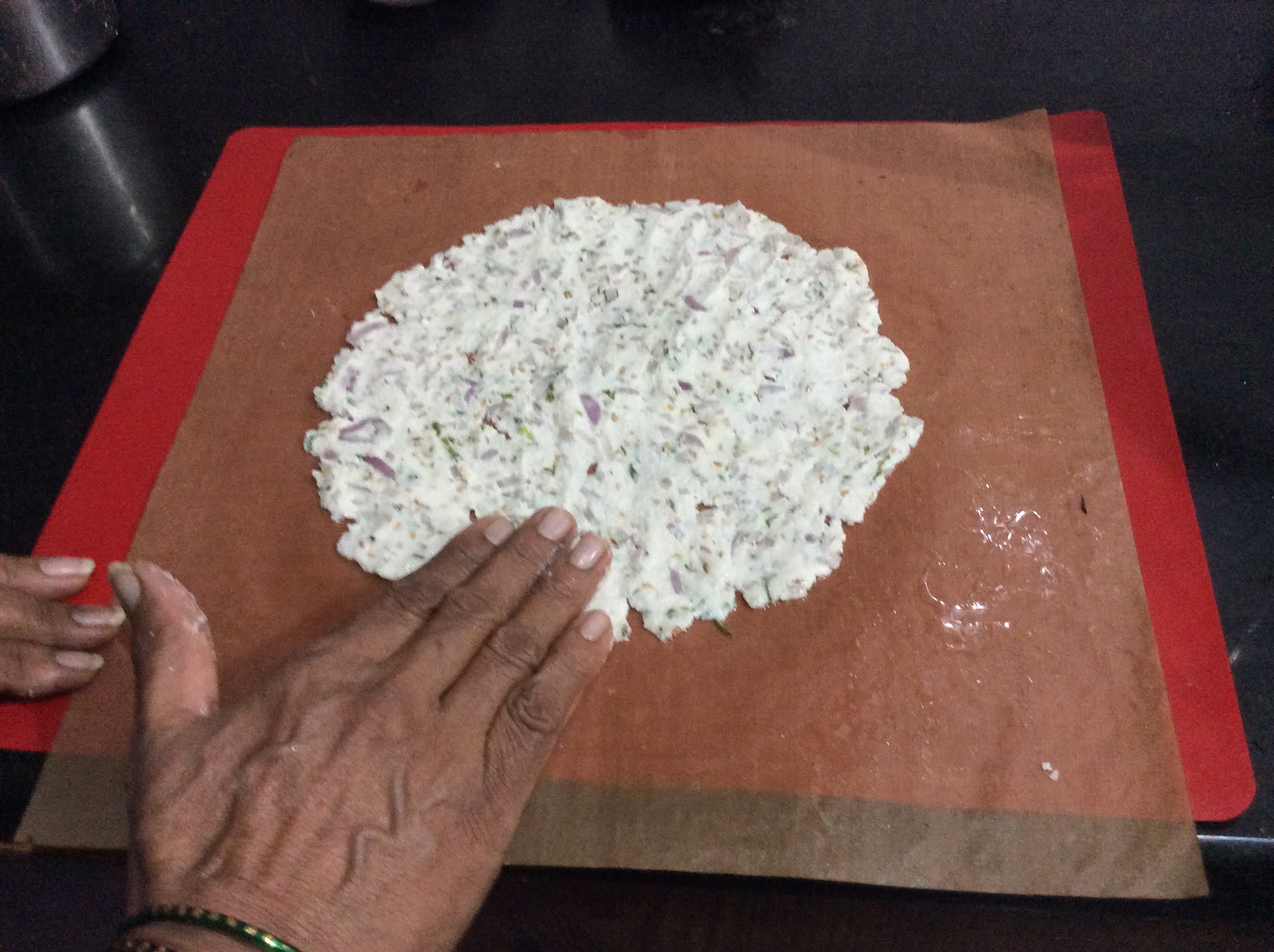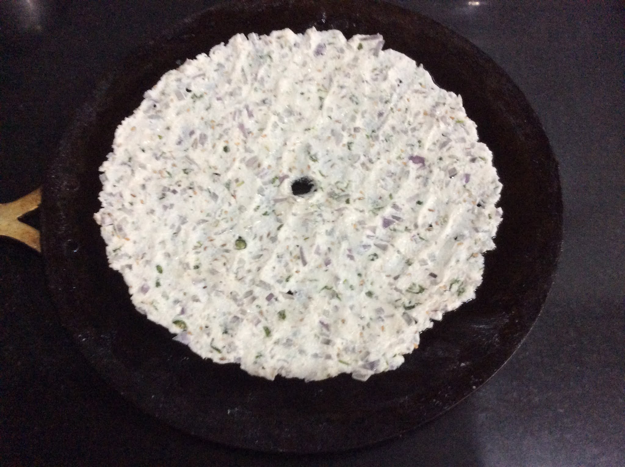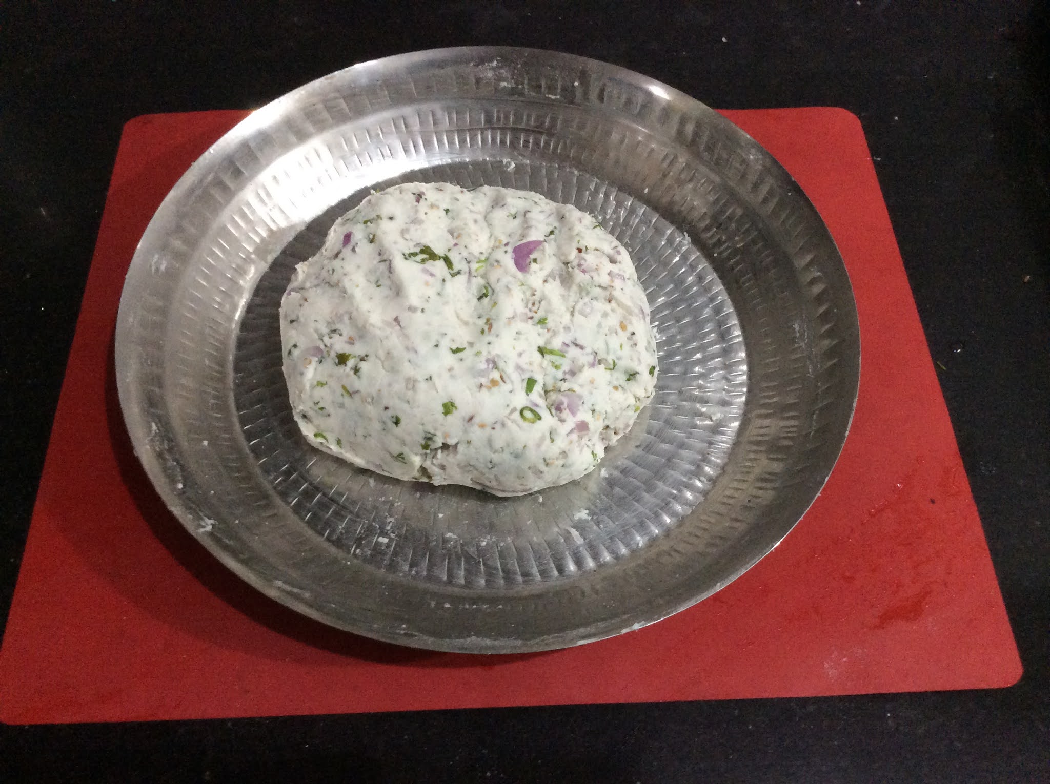 - (Do not add more water because onion has a tendency to release water even after it is in the dough)