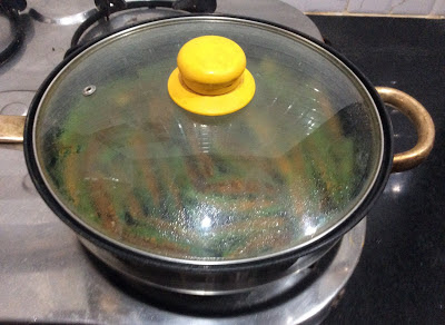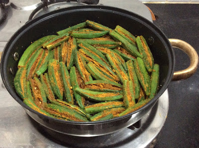 Remove the lid, to avoid the Bhindi becoming soggy (due to hot steam)