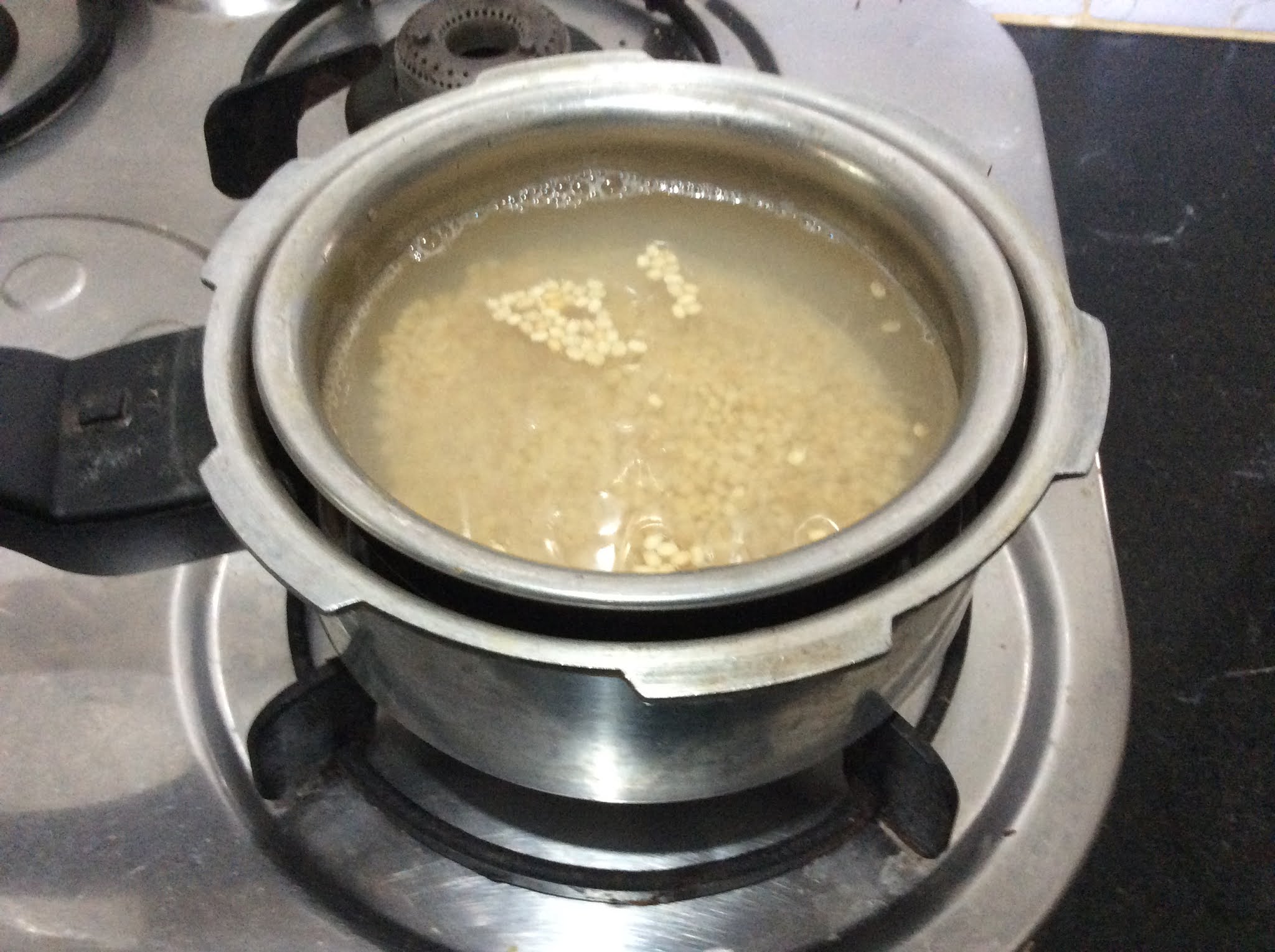 - Now take a Pressure Cooker and keep it to cook adding 2 times water (of the dal you add).