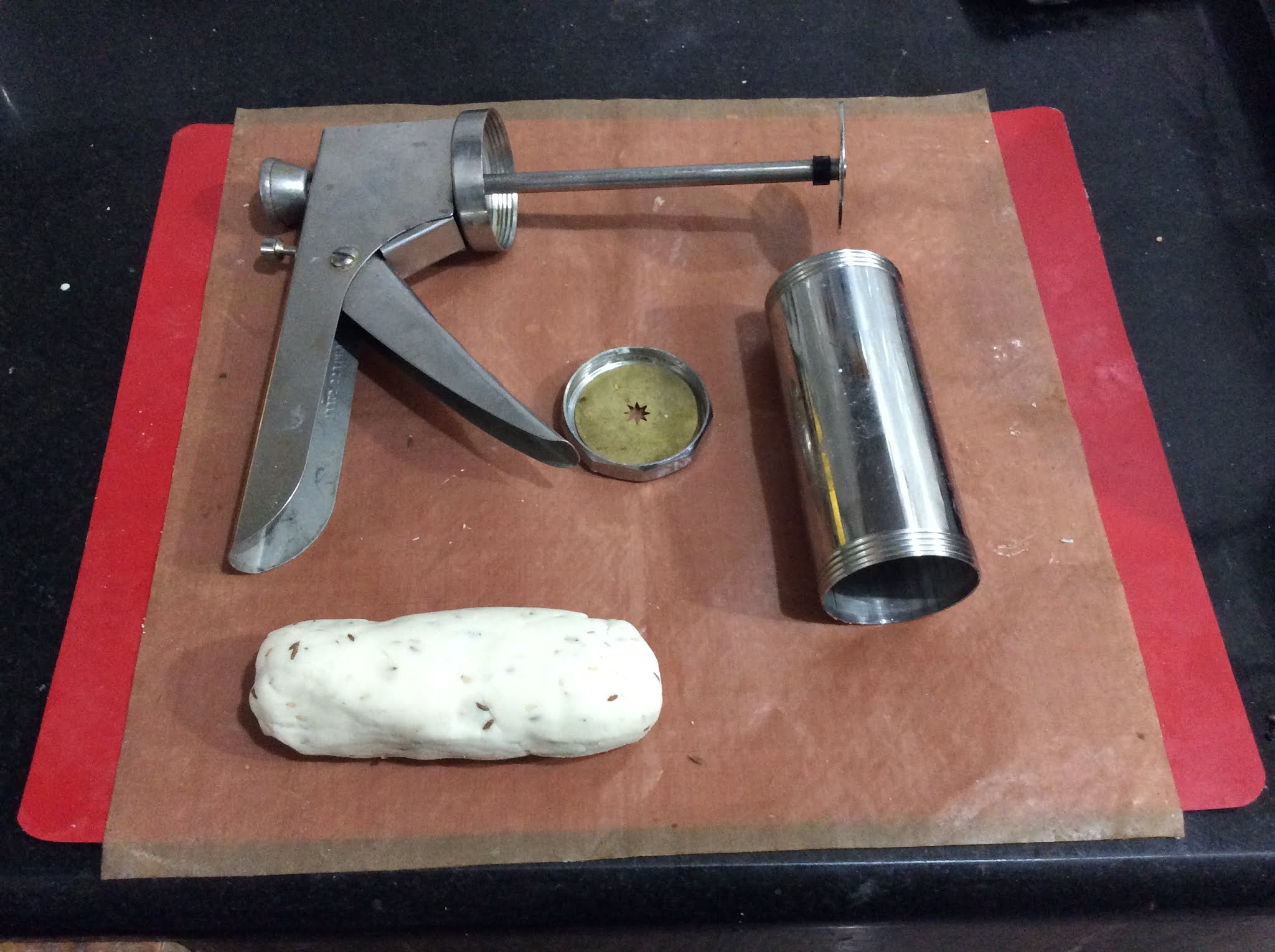- Take chakli mold, and smear oil from inside. (wherever the dough comes in contact )