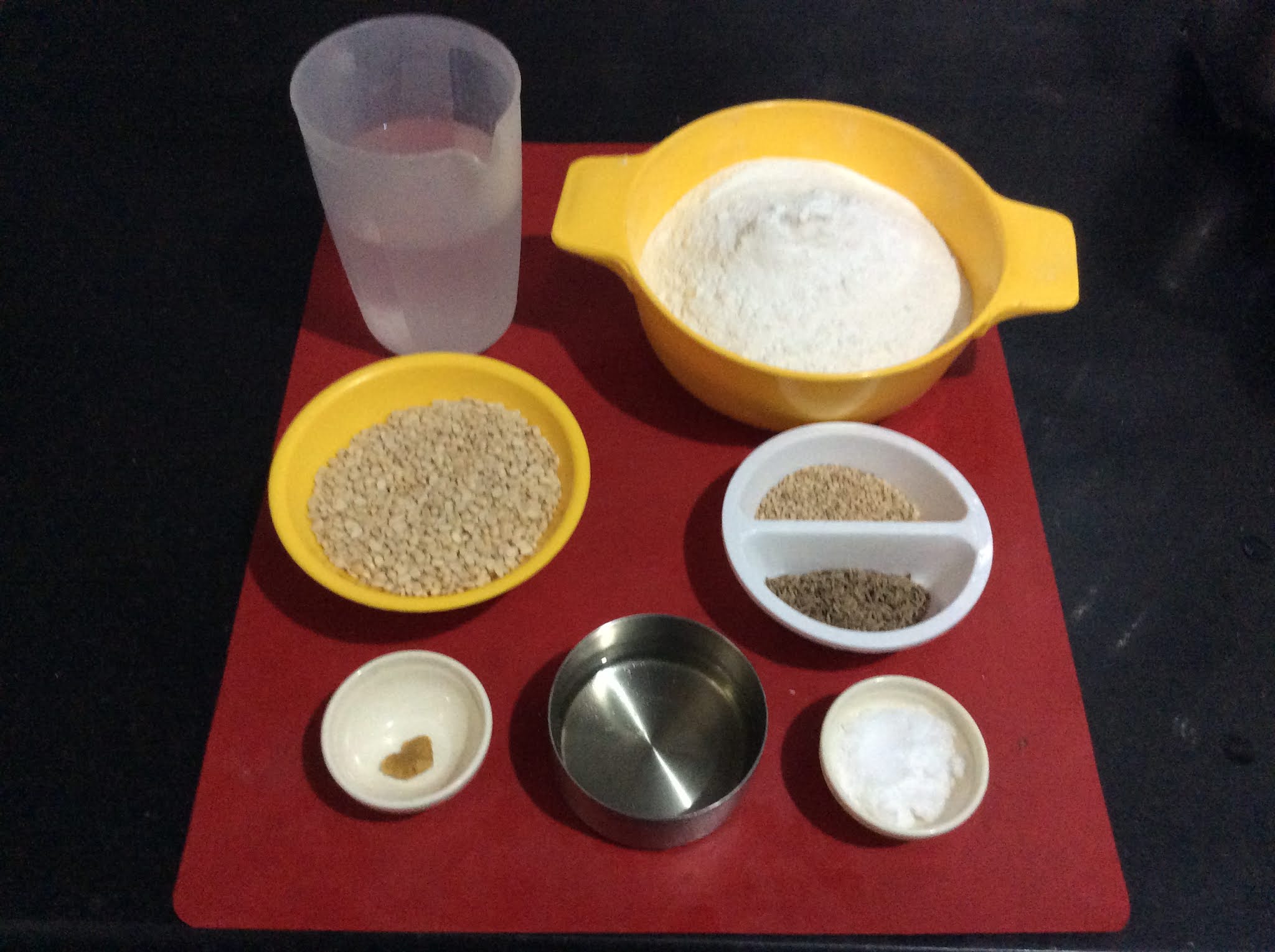 Firstly rice and urad dal had to be washed separately, then spread on a cloth and dried in the shade, then roasted separately and after cooling, milled to get the flour mix.