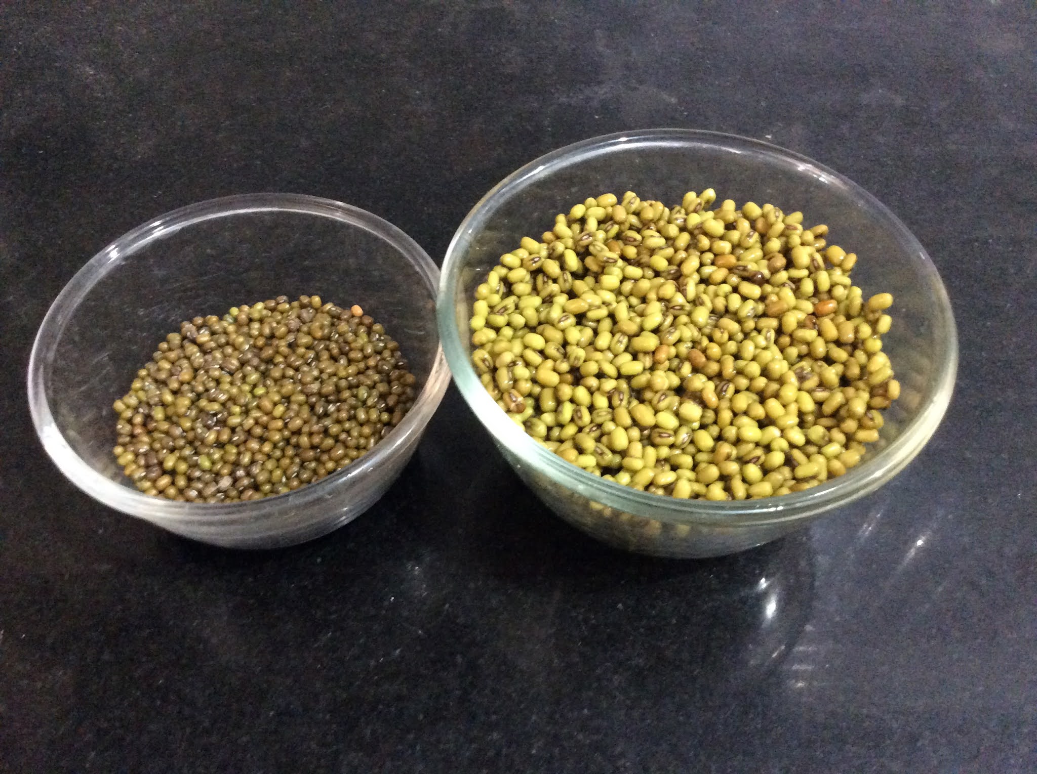 • Soak one cup of moong gram (whole)in 3 cups of water after cleaning and washing them. Keep it