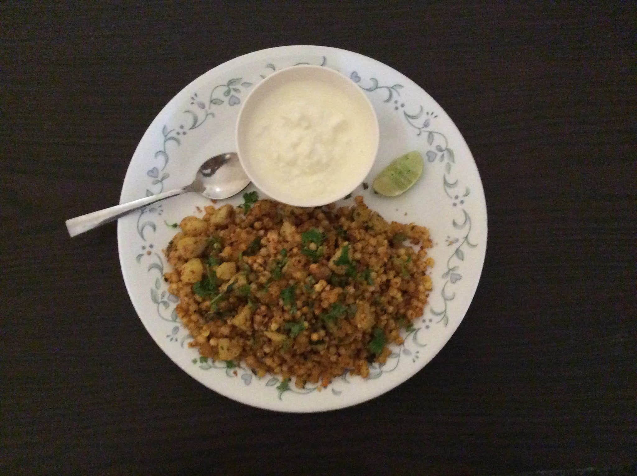 Sabudana khichadi is a dish made during a fast, as it fills your stomach, and is digested slowly, thus you do not have a craving to eat again and again. We add a sufficient amount of peanuts and potato which is a good amount of calories. some spices are added to enhance the taste, and garnished with fresh coriander leaves and lime juice.