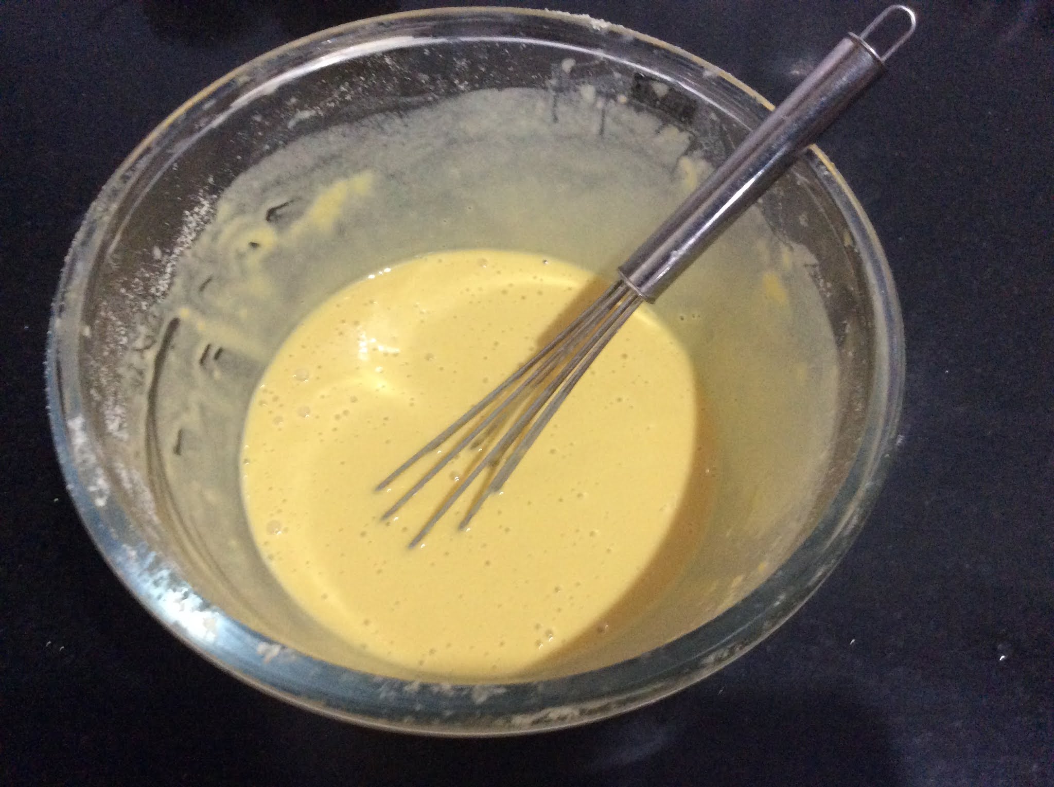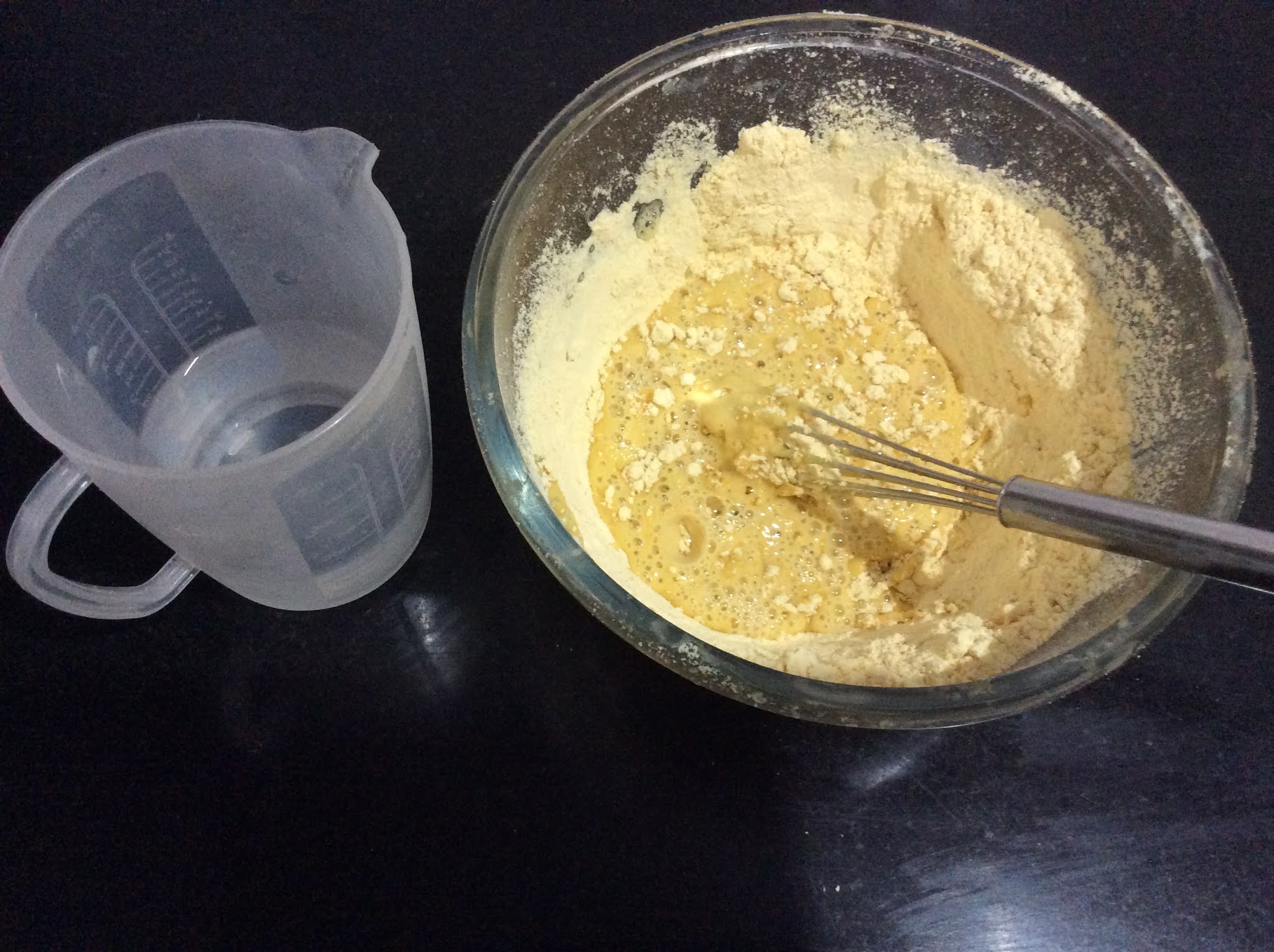 - Now start adding water and simultaneously stir the batter with a whisk or a spoon so that you don’t form lumps, but a uniform batter.