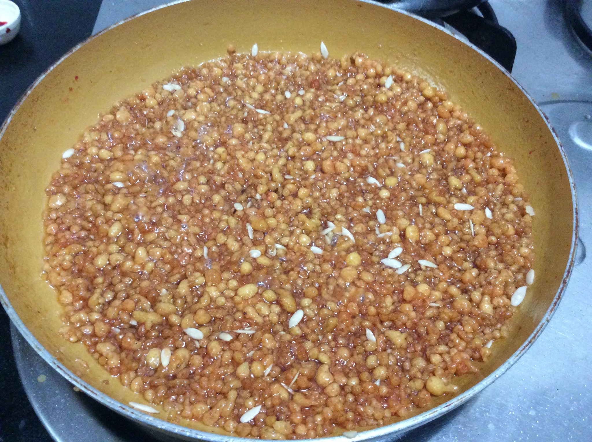 - Let the boondi cook and absorb the syrup. Allow to cook for 5 to 8 mts.