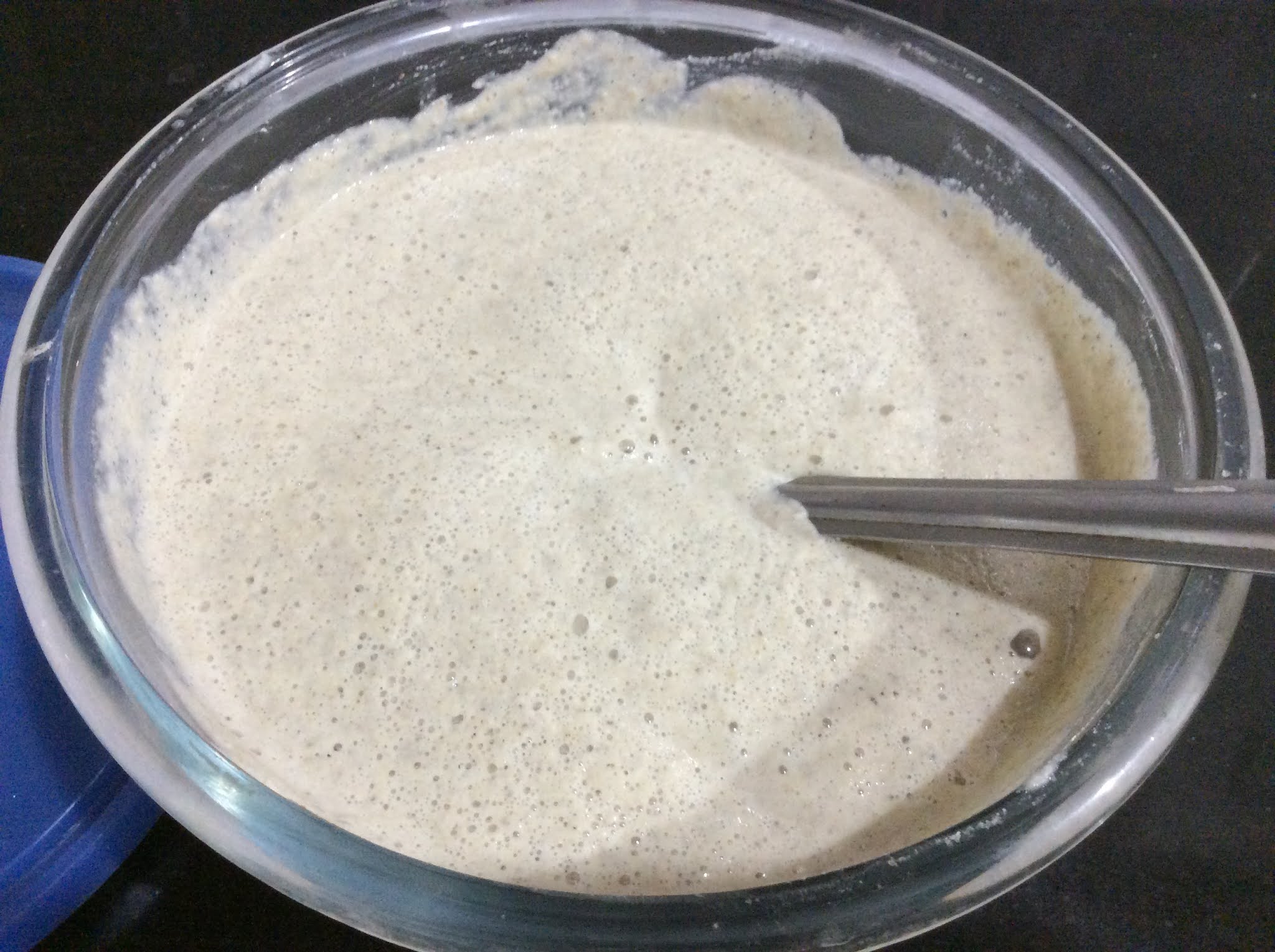 •  You will see that the batter has fermented and has become very light and foamy with plenty of air pockets