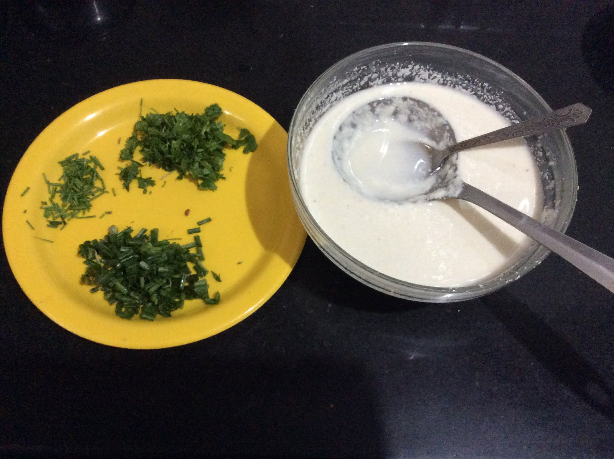 NOW THE BATTER IS READY, BUT BEFORE USING IT PUT 1/2 TEASPOON OF BAKING SODA+2-3 SPOONS OF WATER TO DISSOLVE AND THEN MIX IT WITH THE BATTER.