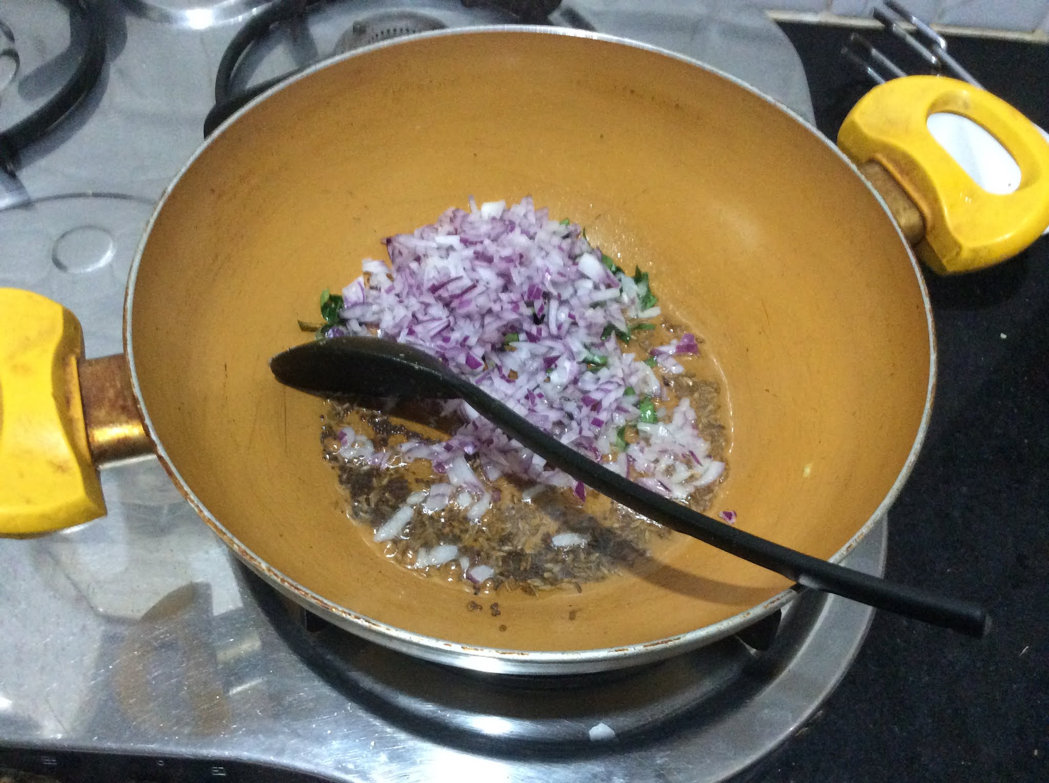 Now chop the onions and curry leaves. and coriander leaves finely.