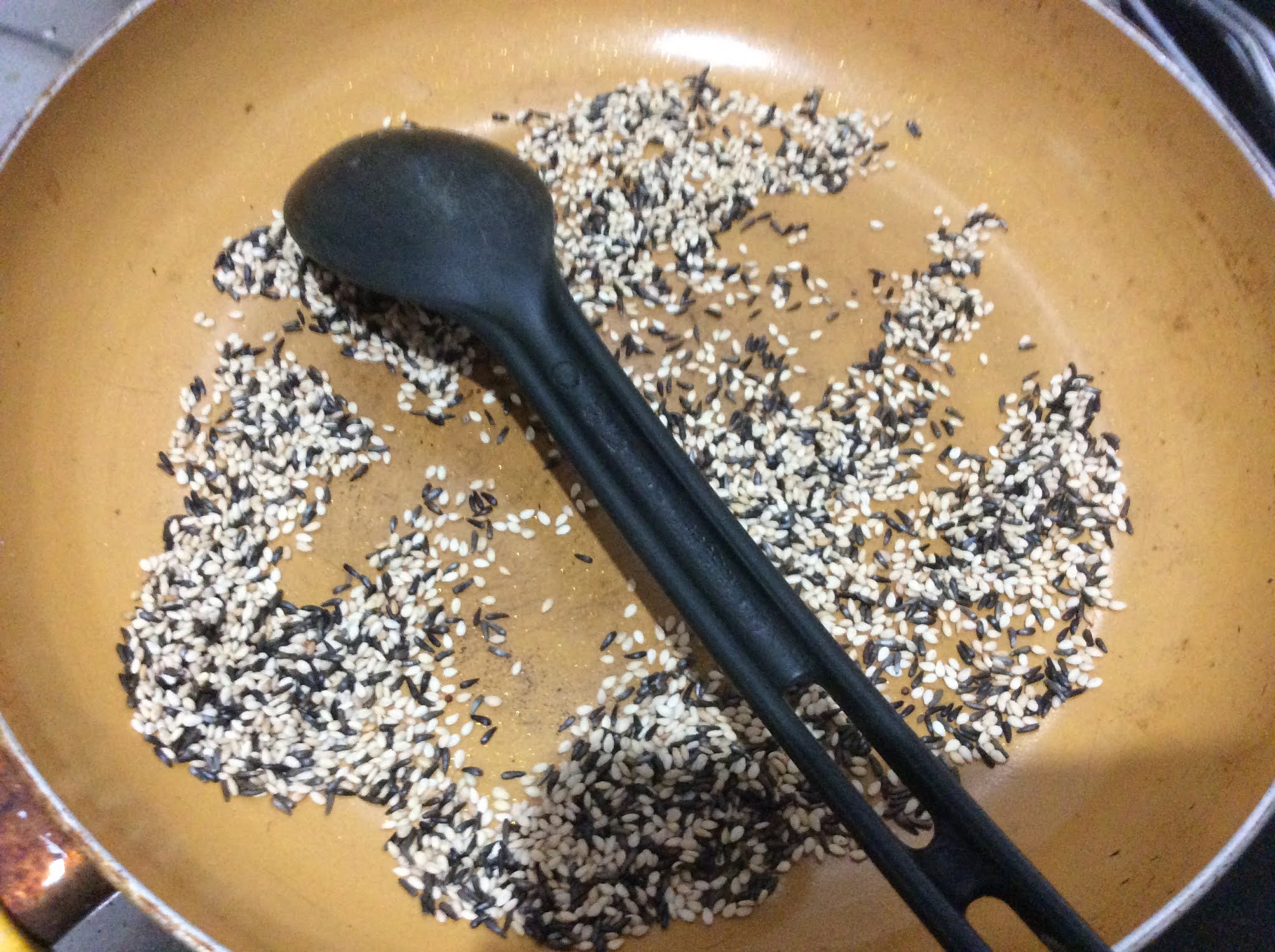 • In the same pan on low heat roast sesame seeds and Niger seeds together.