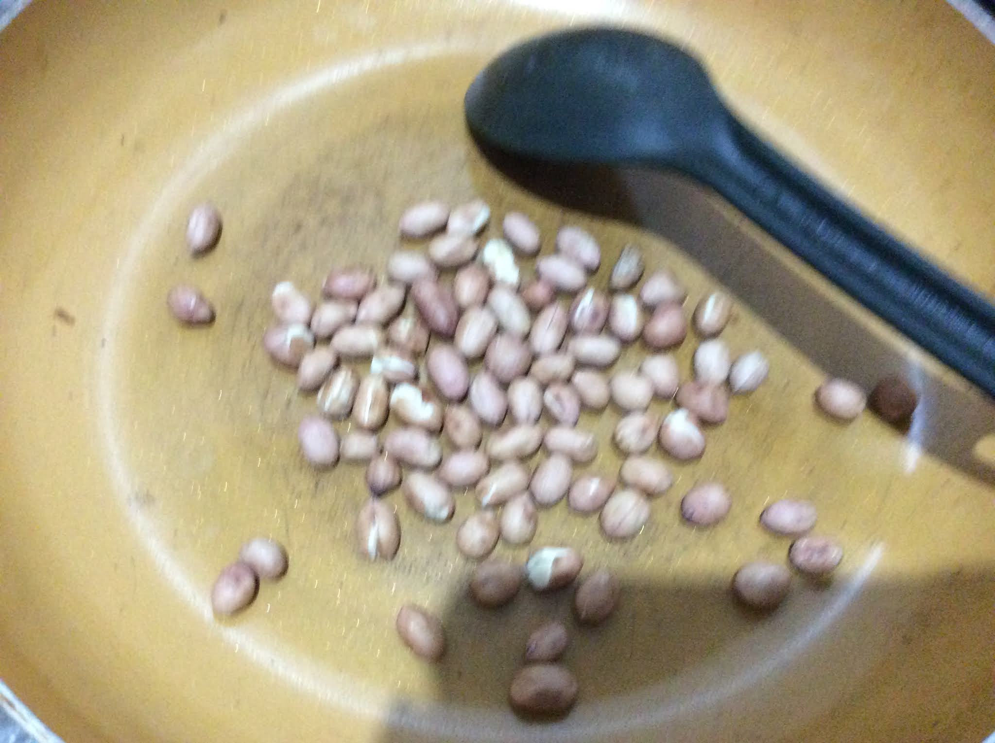 • When hot and dry roast the peanuts till it cracks and starts leaving the skin. Remove on a plate.