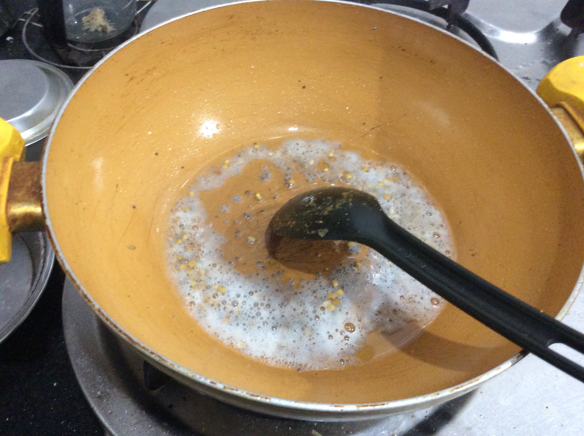 COOKING THE GRAVY FOR MAKING YENNEGAI