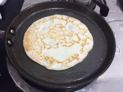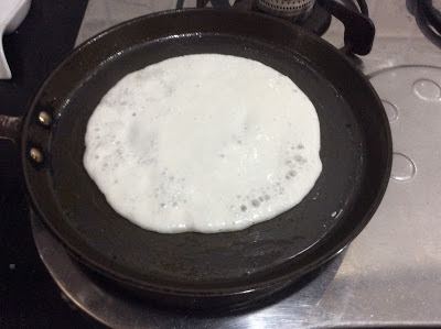 3.     Reduce the flame and with a ladle(large deep spoon) put the Batter in the center of the pan.