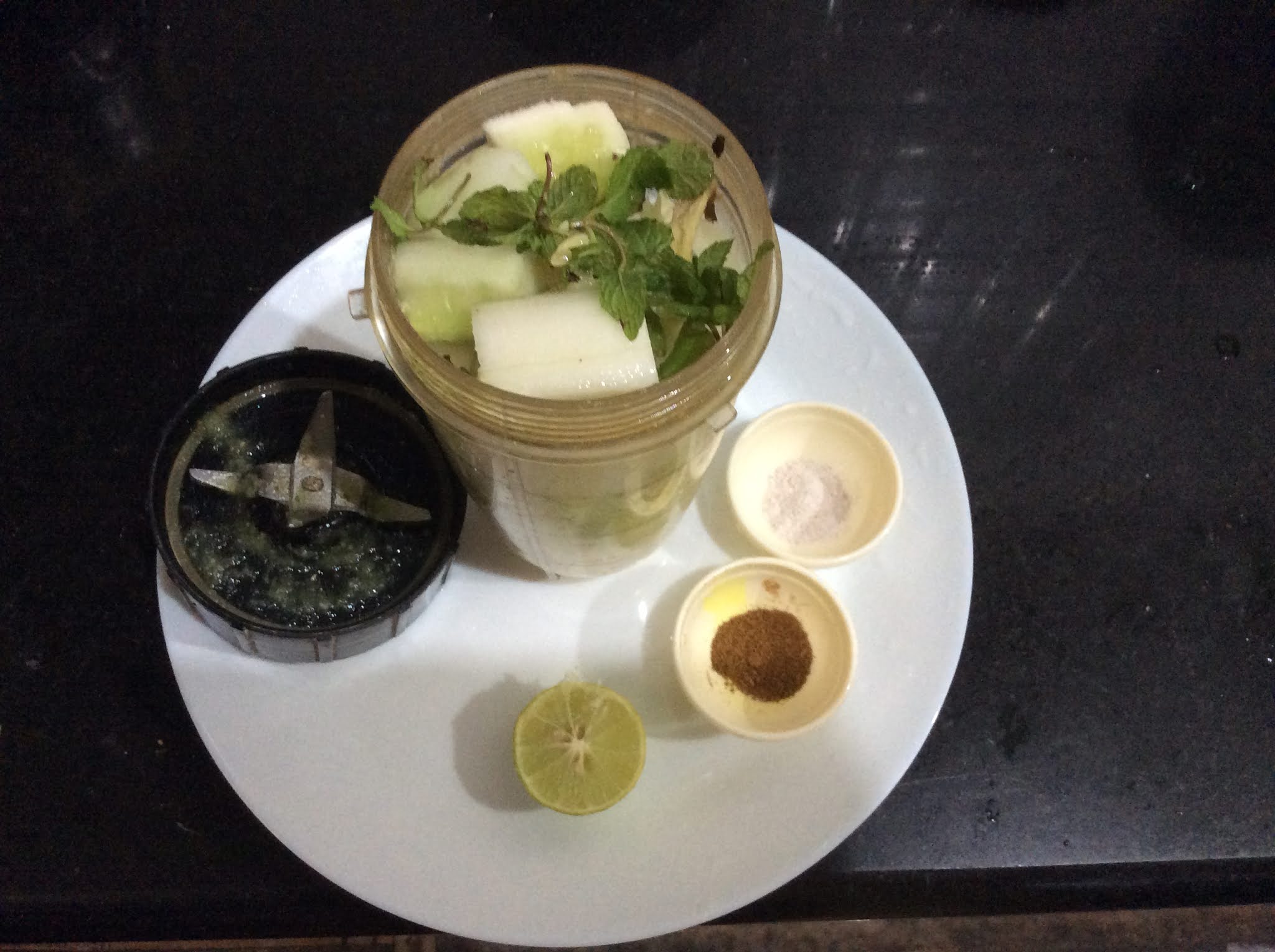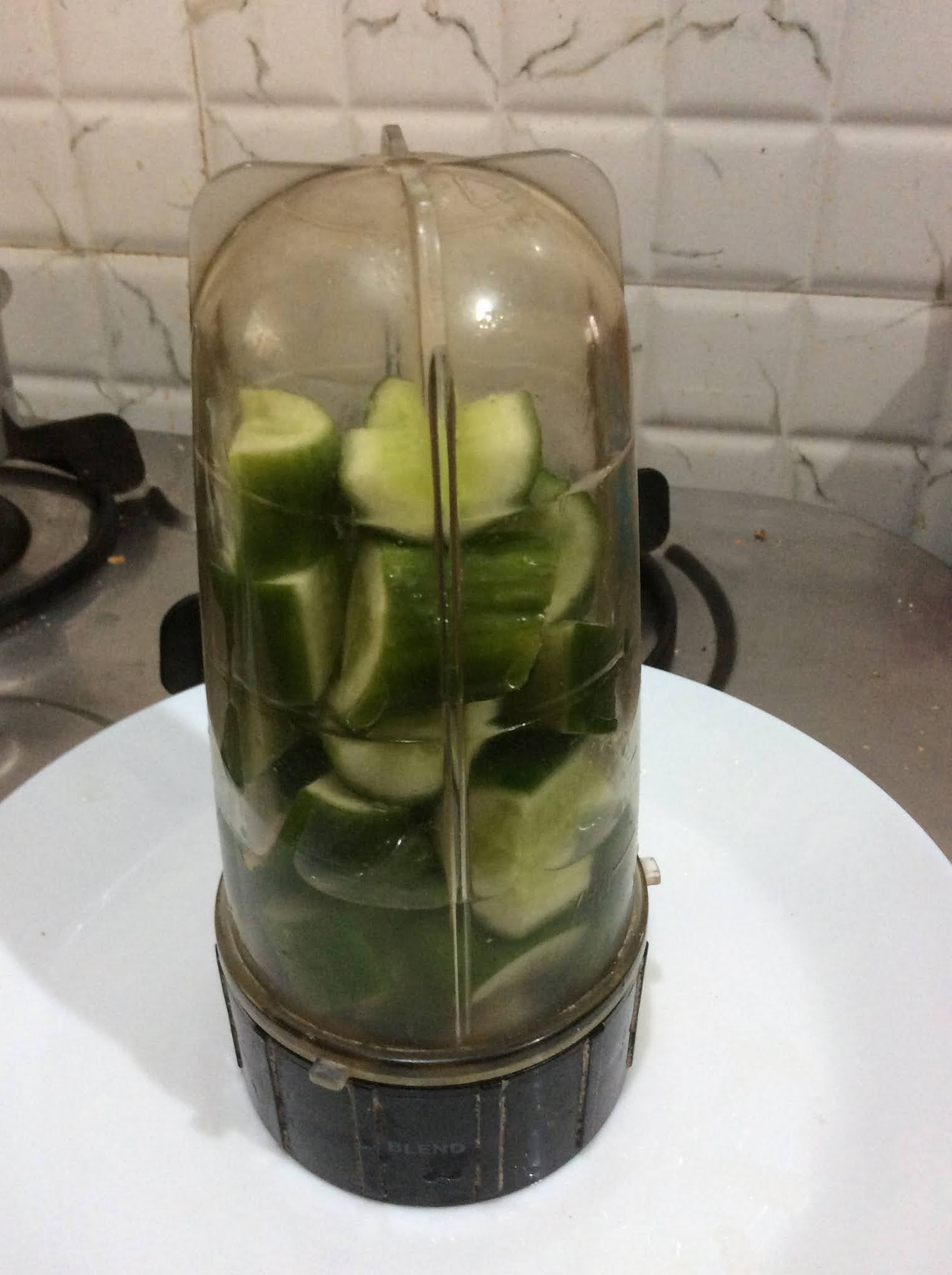 • Now add the cut pieces into a blender jar and add 1 glass of water and blend the mixture to a liquid.