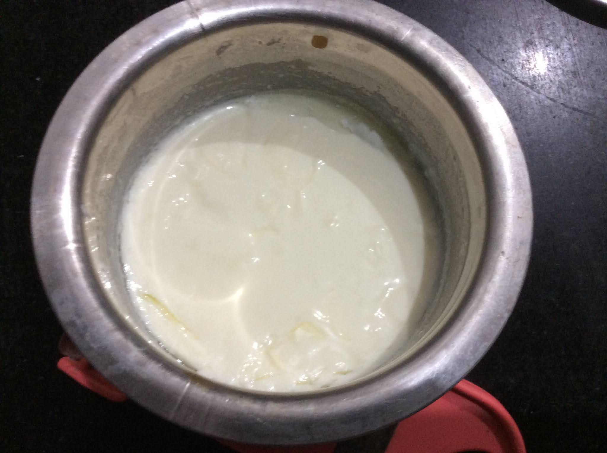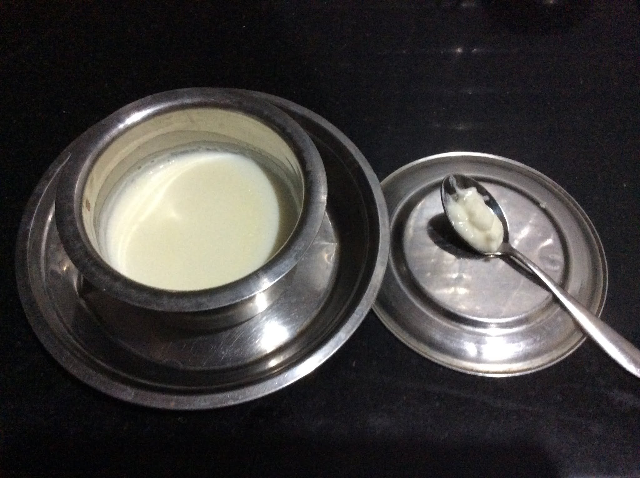 - Take a vessel and put curds, Chilled water, or plain water with Ice cubes and salt in it.