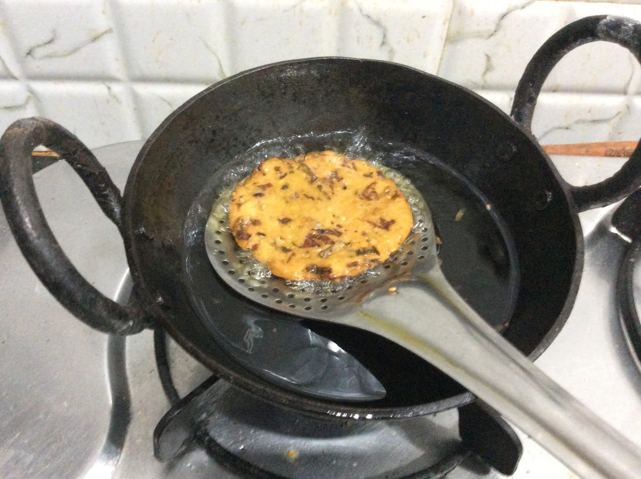 - Fry flipping both sides till you get a golden color, and is crisp.