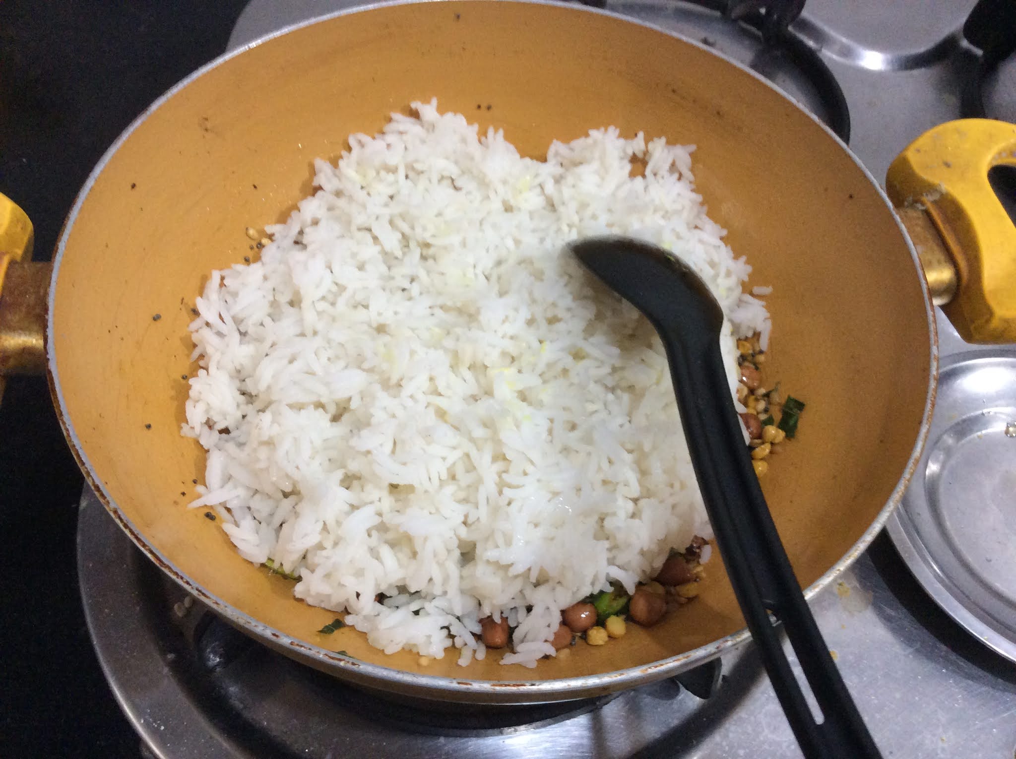 At times, we have plain cooked rice but no vegetables, at that time we can simply make a Garnishing by using Oil, Mustard, Hing, Green chilies, Curry leaves, Peanuts, Chana dal, and Urad dal.