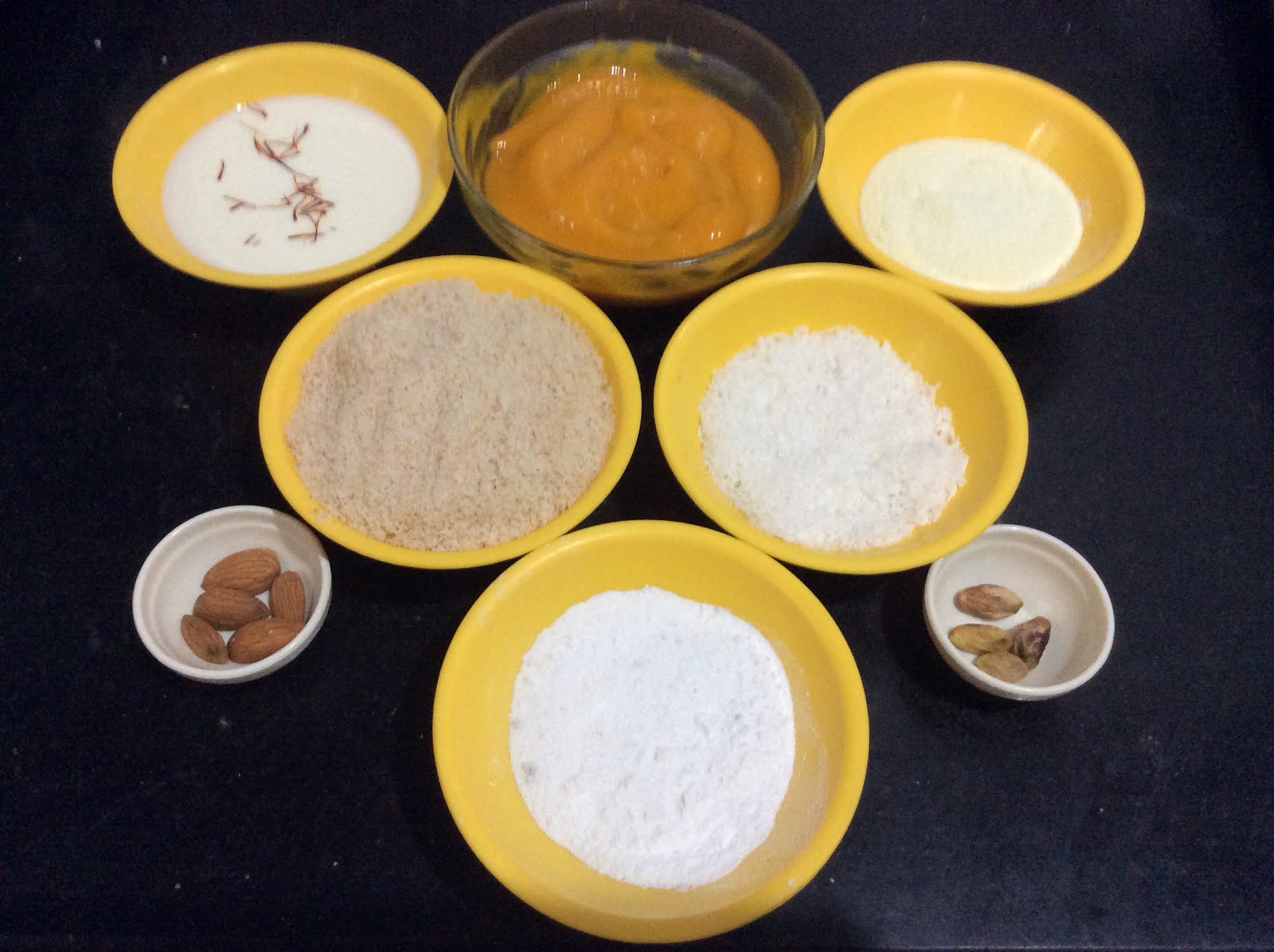 Usually, sweets need too much of Ghee, sugar, Condensed milk or mava or khoya, and dry fruits.