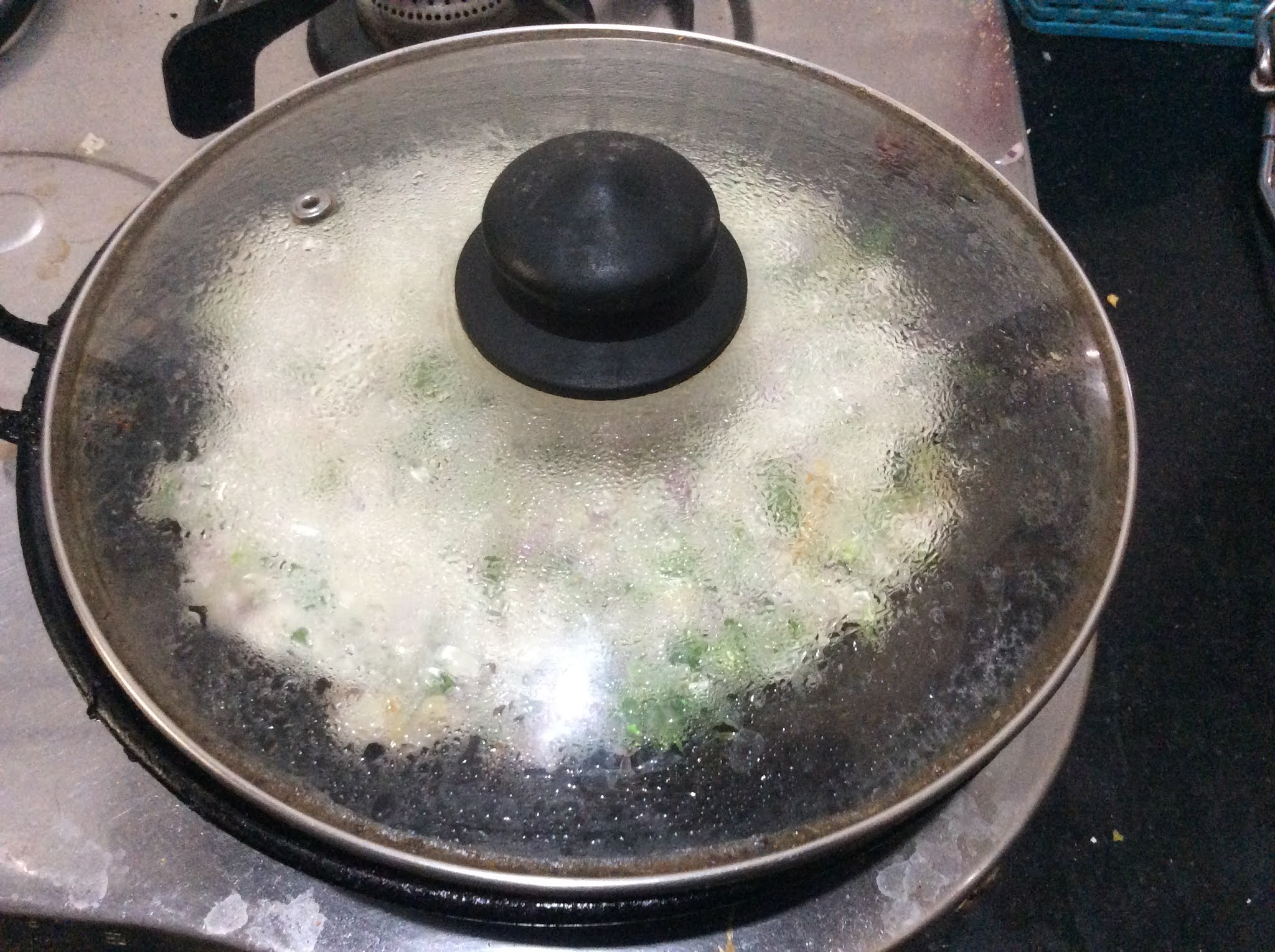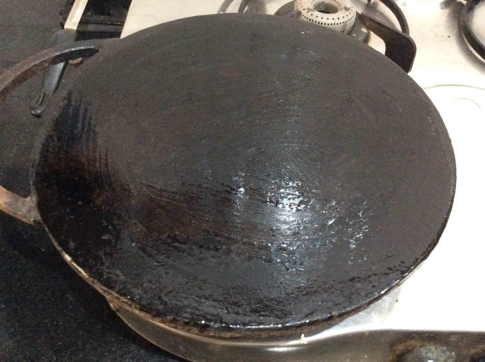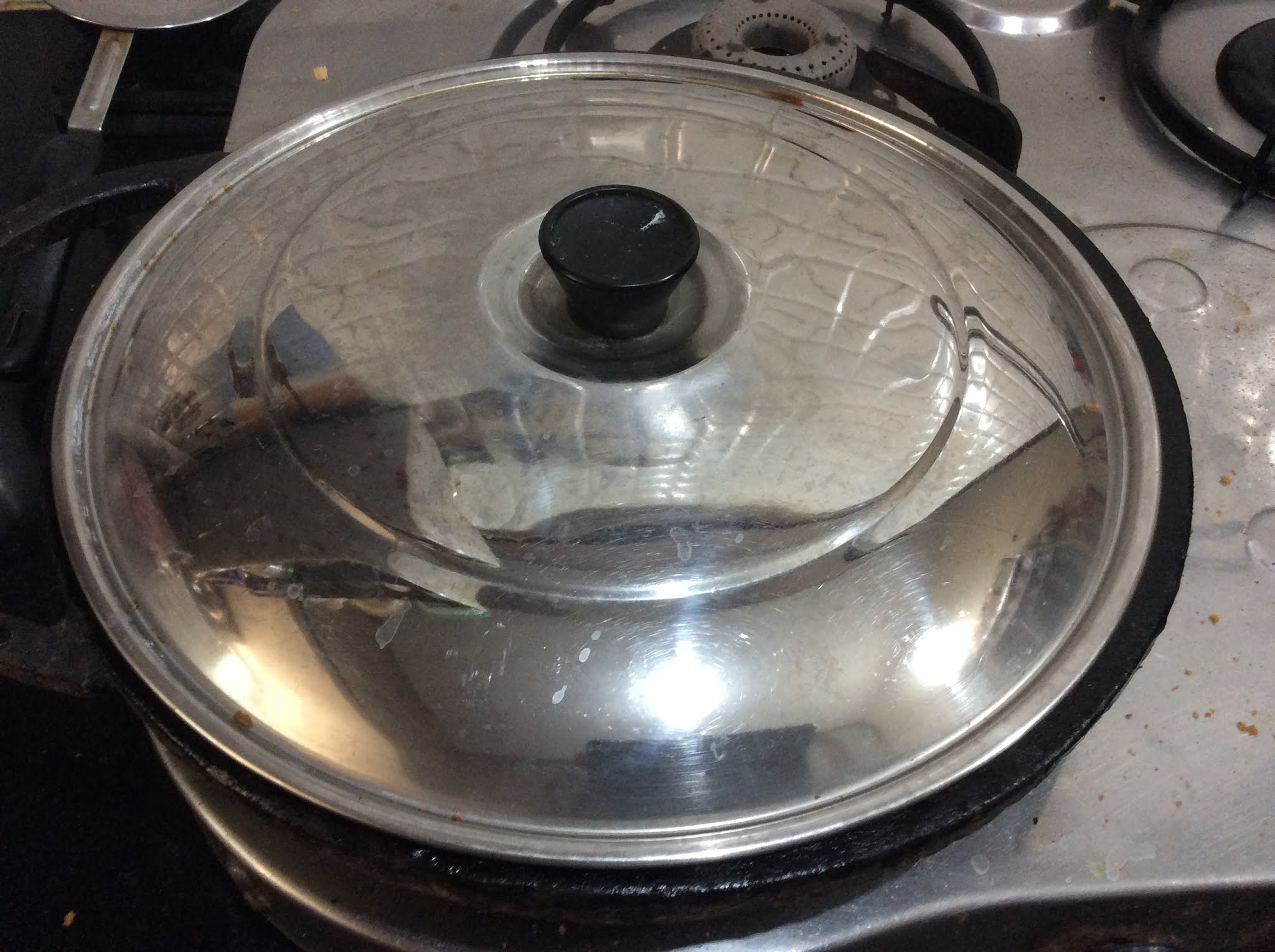 - When it is hot, sprinkle some water or wipe the pan with a wet cloth. (wiping is a better option)