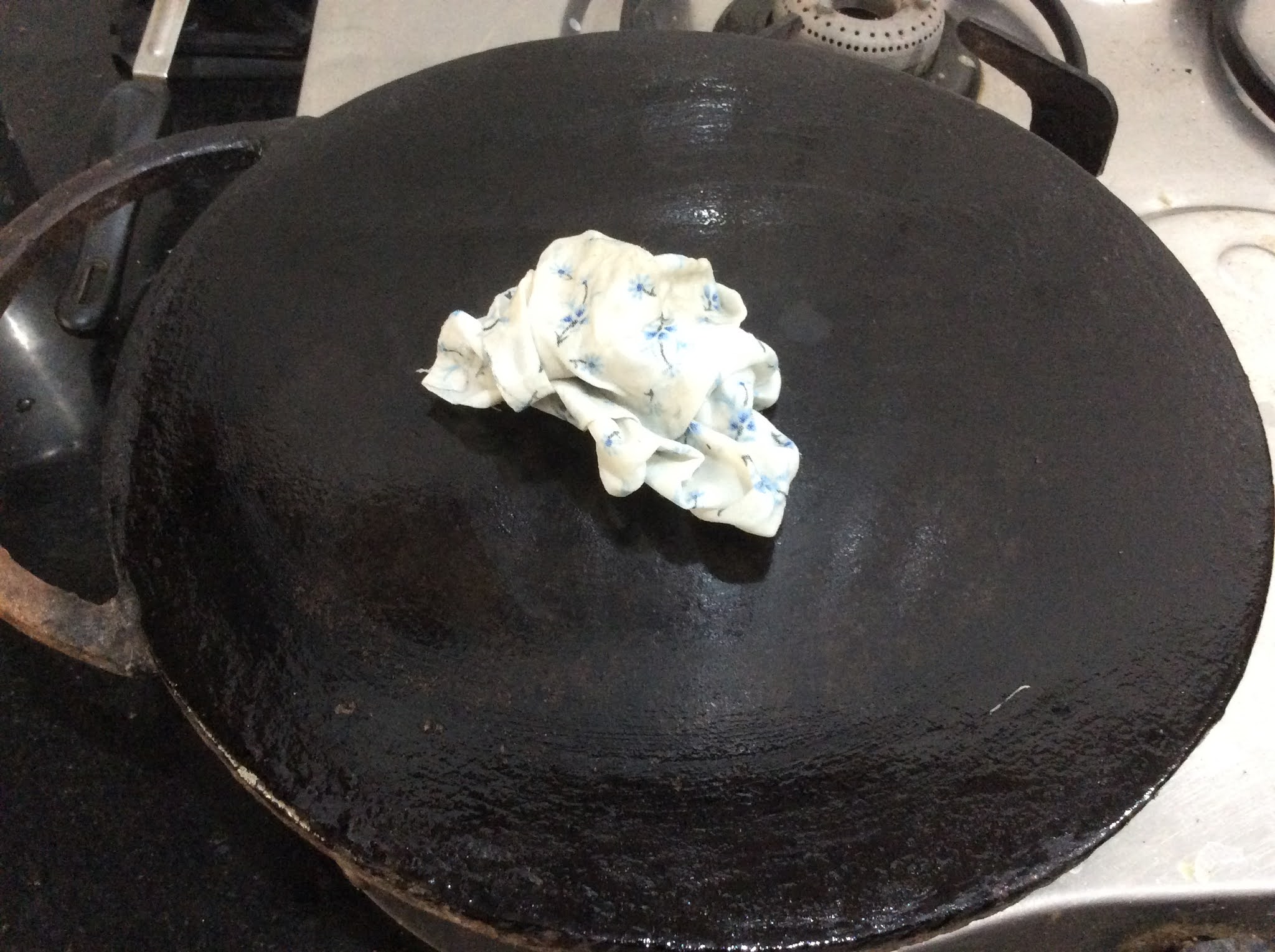 - Smear oil and when the Pan is hot, wipe it with a wet cloth.