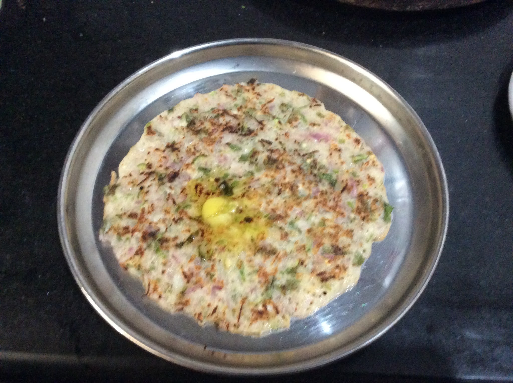 - Now gently spread the batter with a light hand, to the required size. (do not spread too thin, or else it will break)