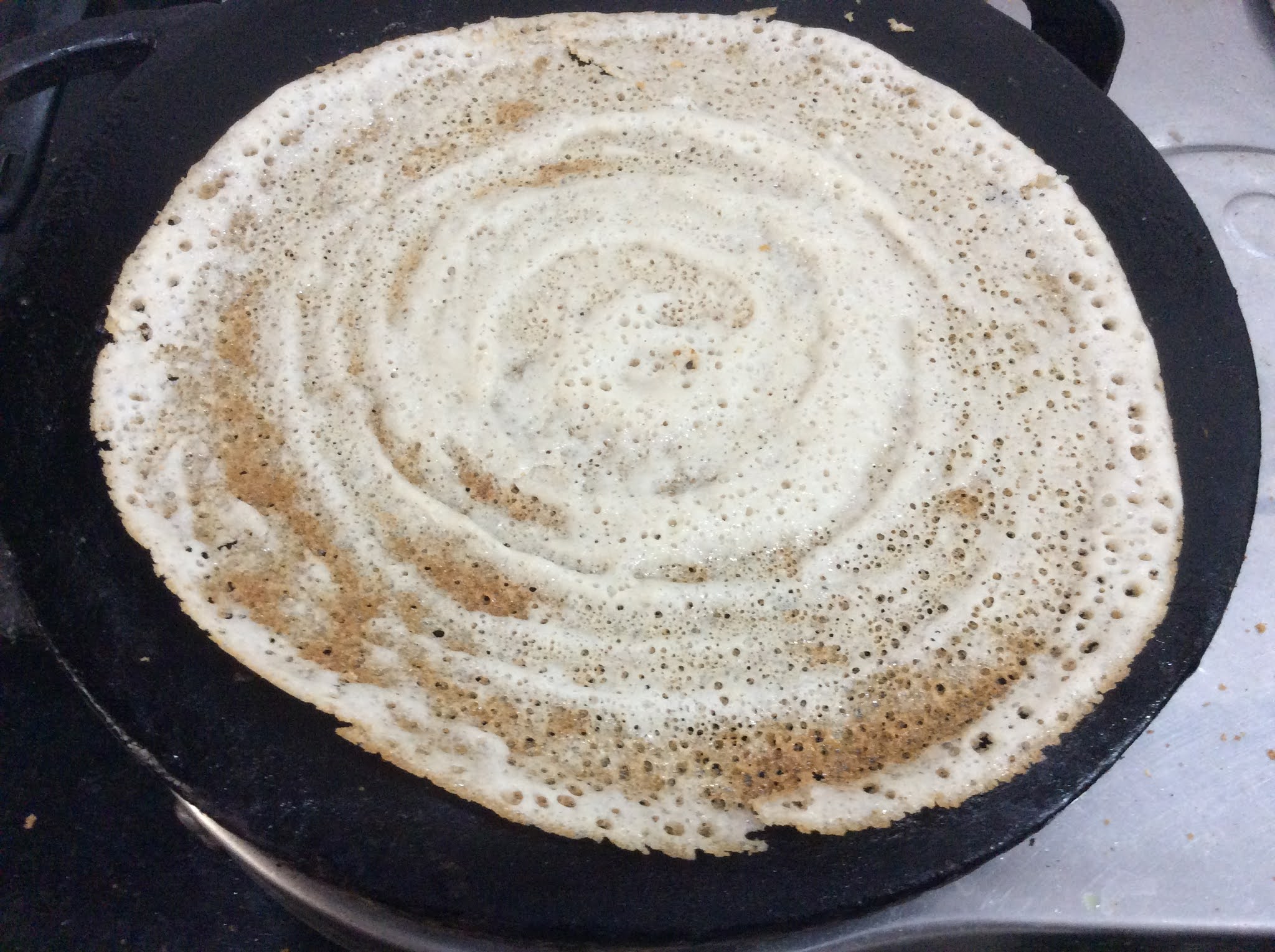 - Put some oil on the dosa and also on the edges.