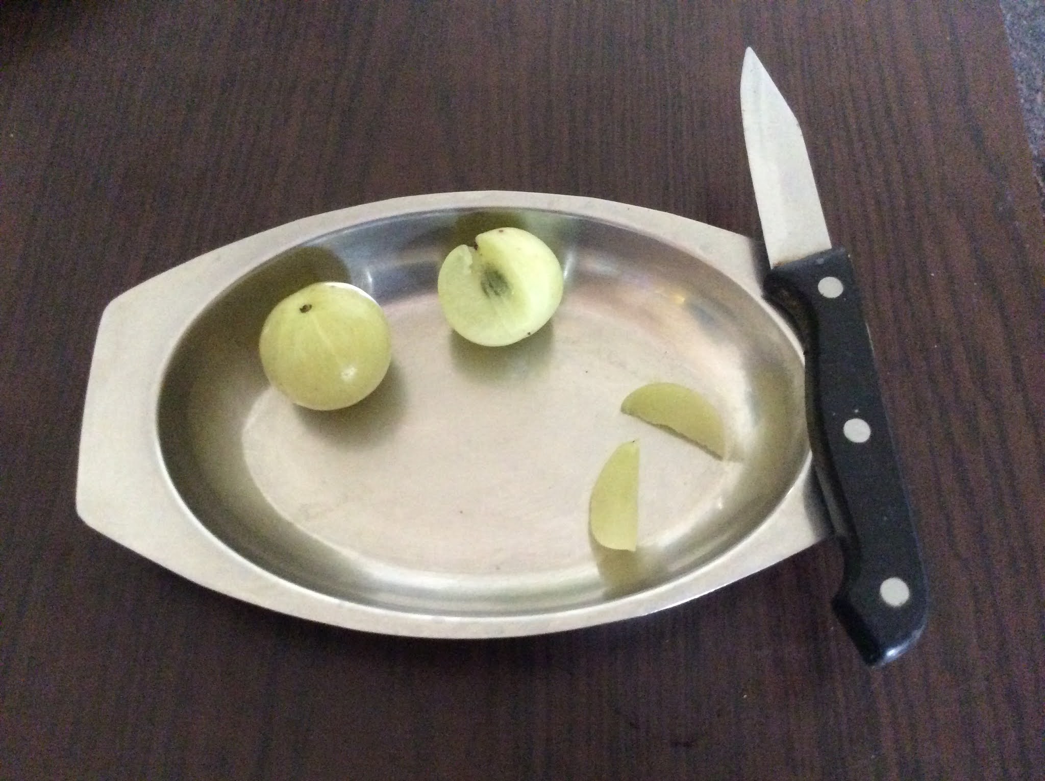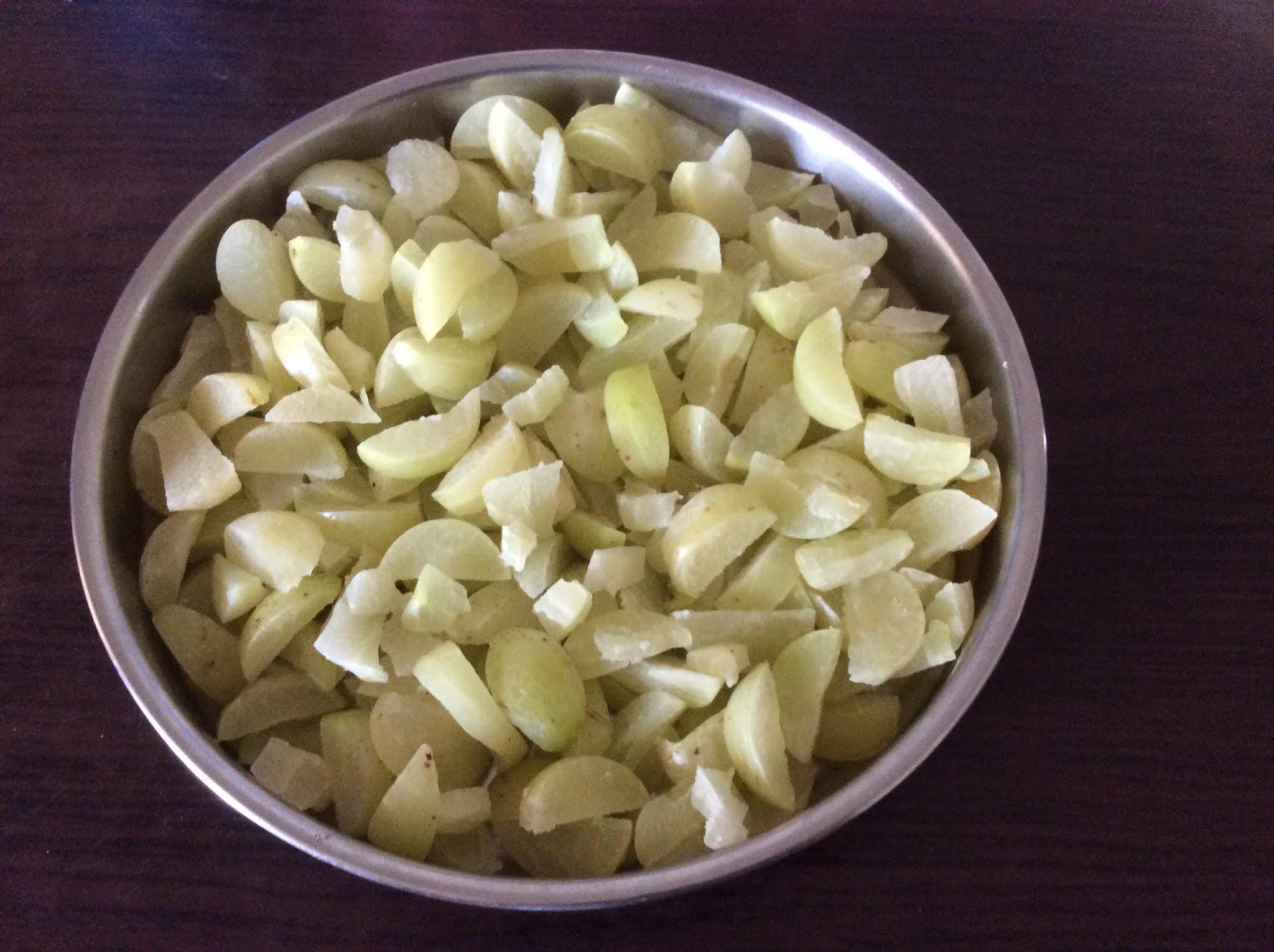 - Wash, dry, and cut AMLA INTO PIECES as shown below and remove seeds.