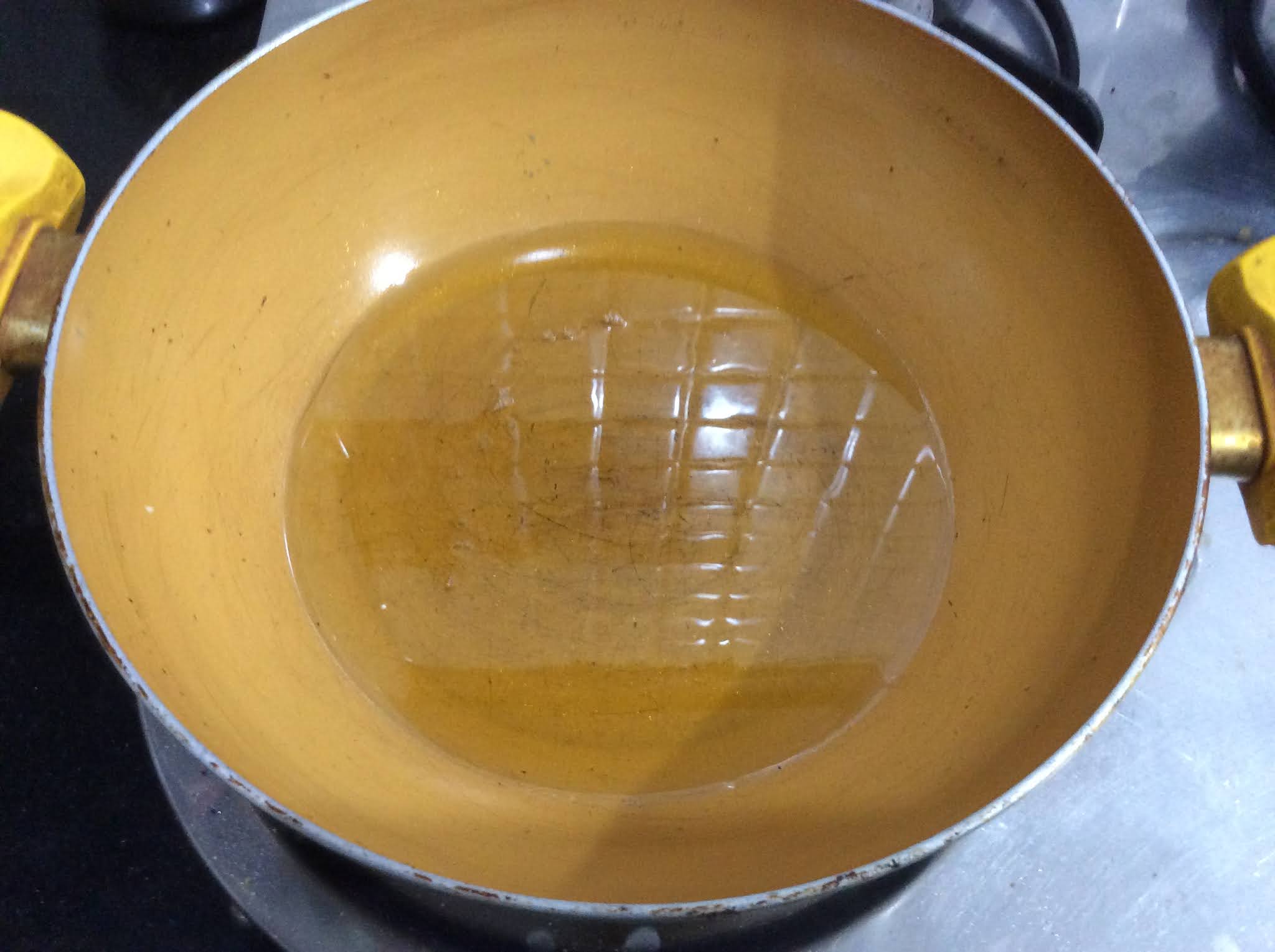 - Heat about 1/2 cup of oil in a pan and let it cool. (lukewarm)