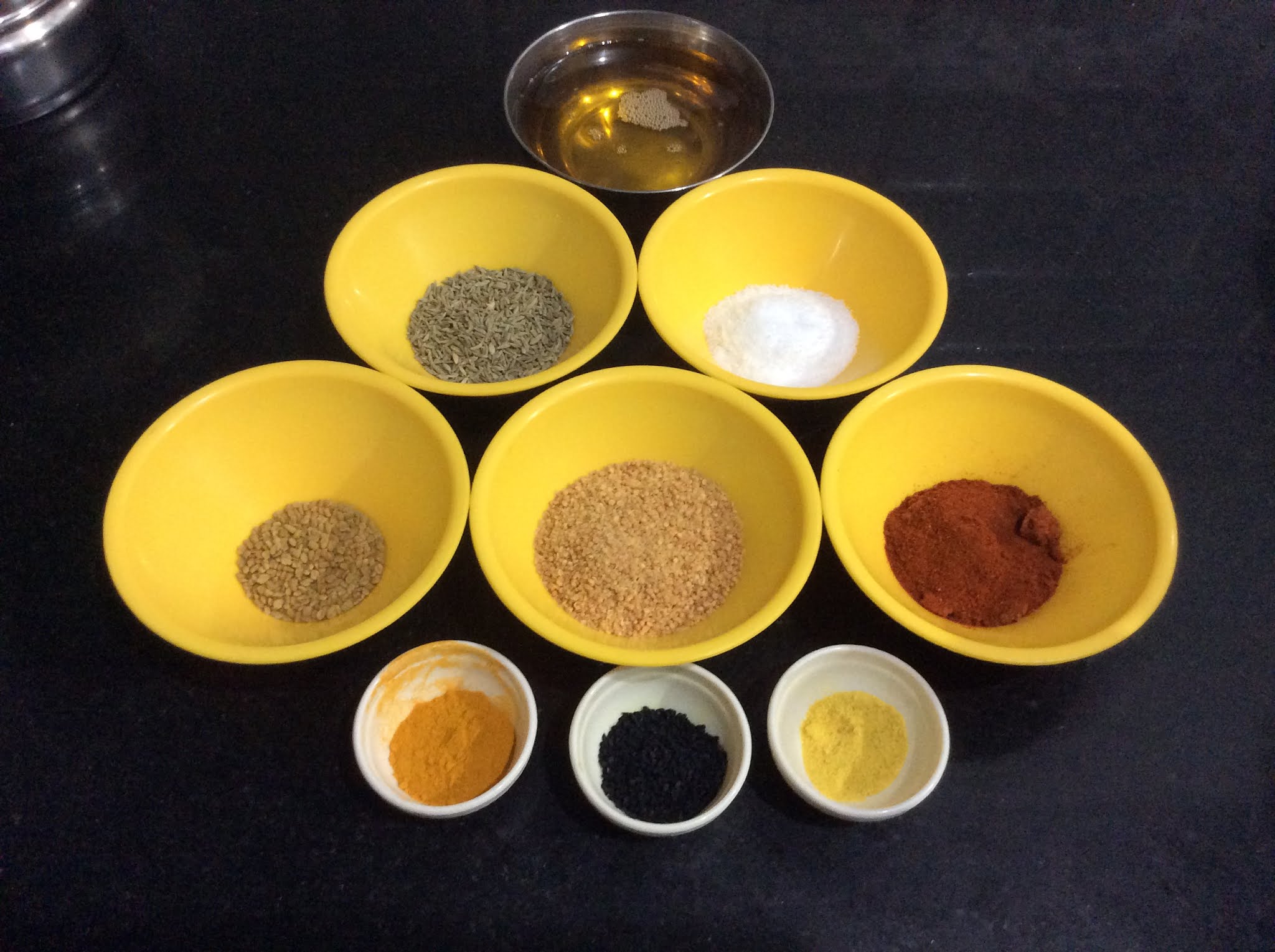 - Gingelly or til oil-1 cup or as needed. (can use any oil)