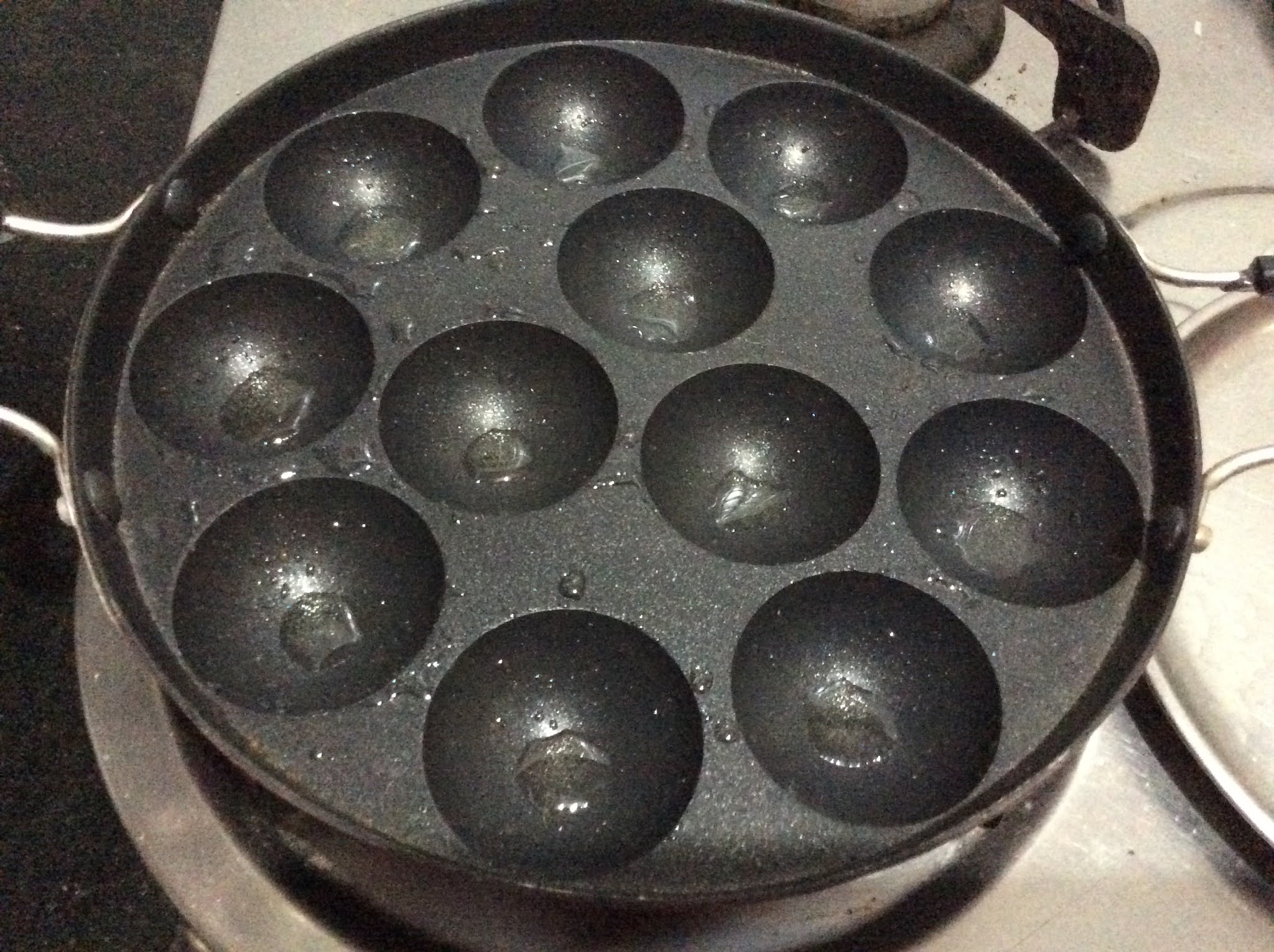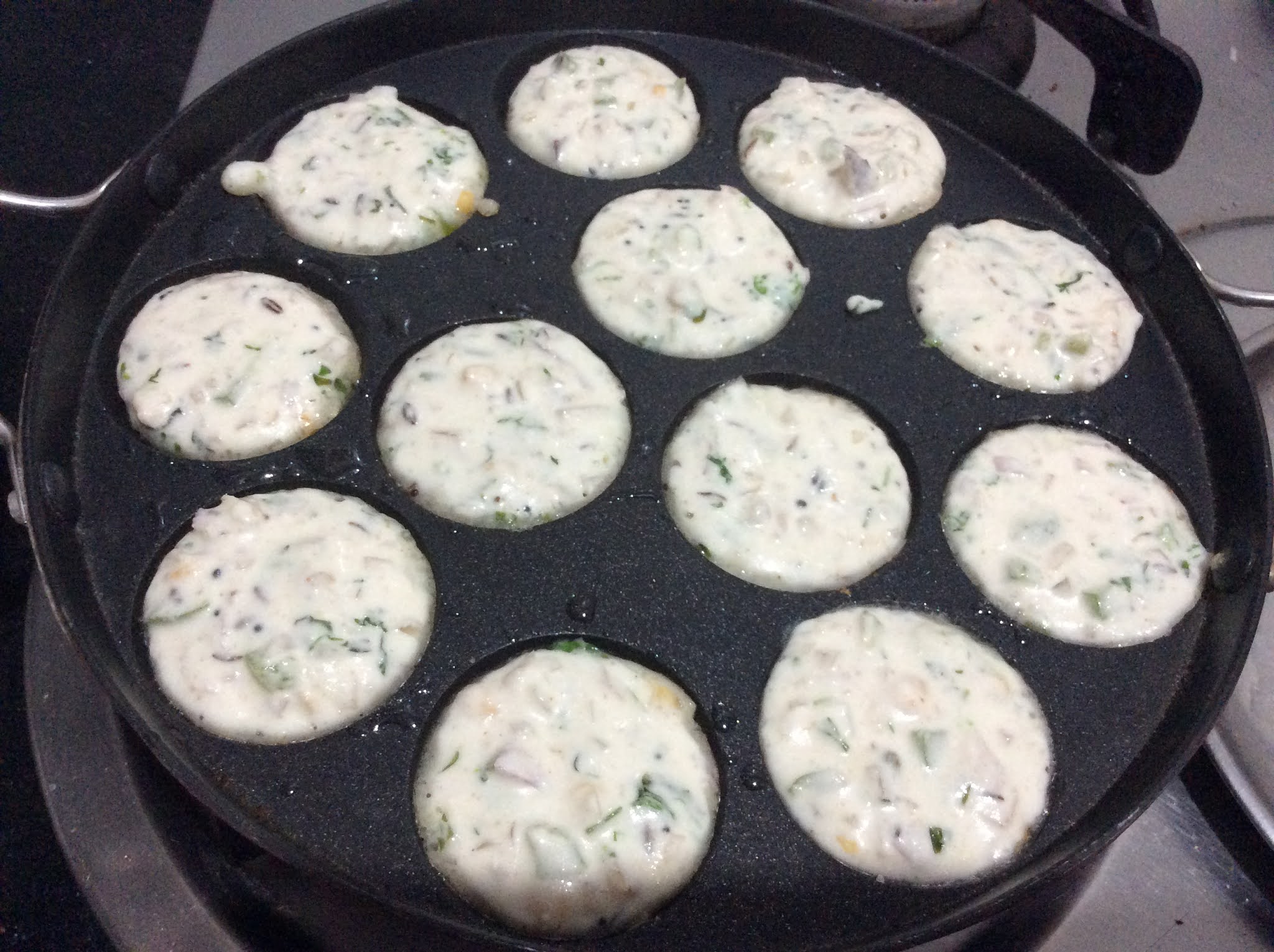 - Keep the Paddu pan on the flame and let it heat.