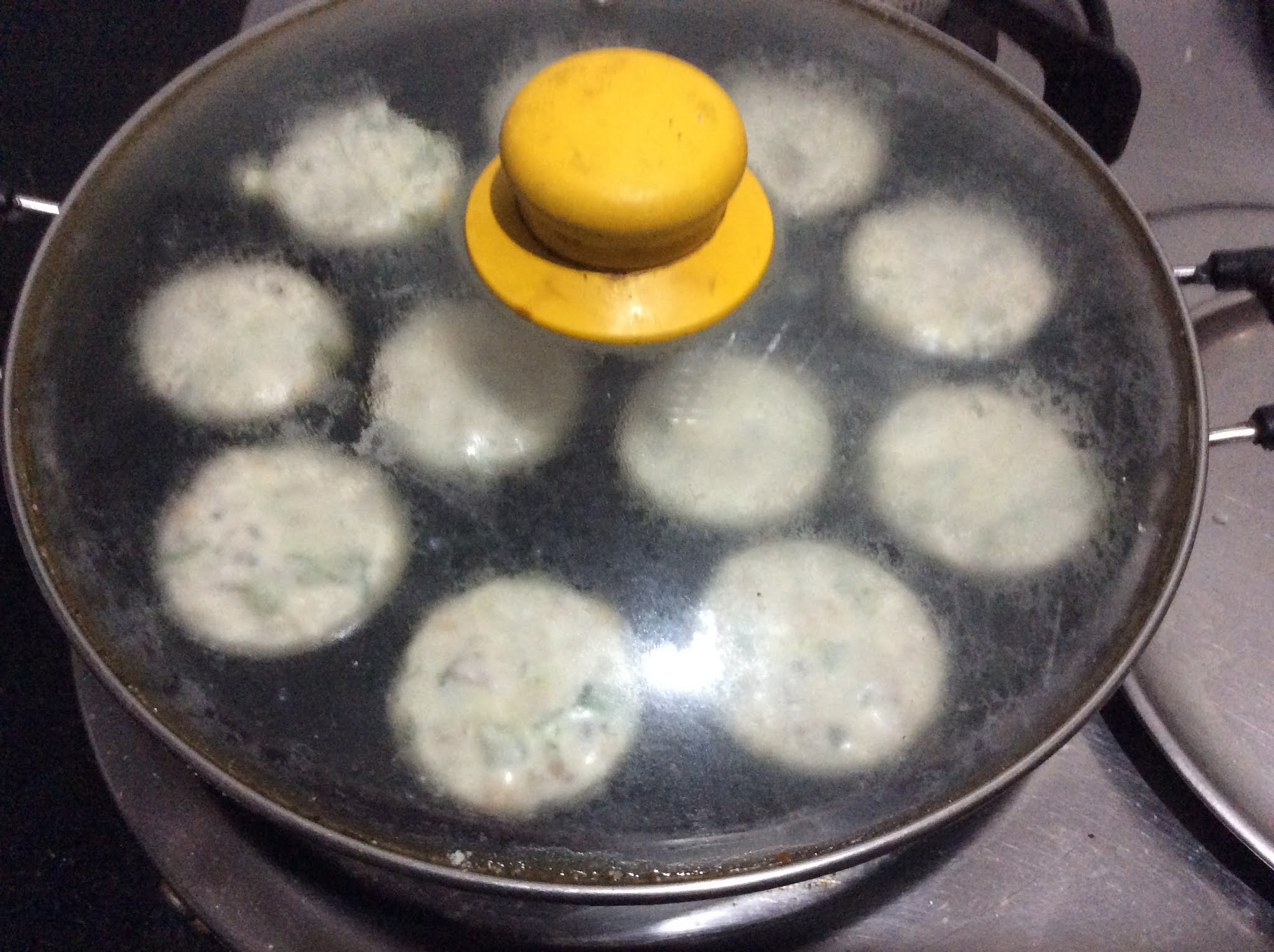 - Pour little drops of oil on the Paddu, and cover the pan.
