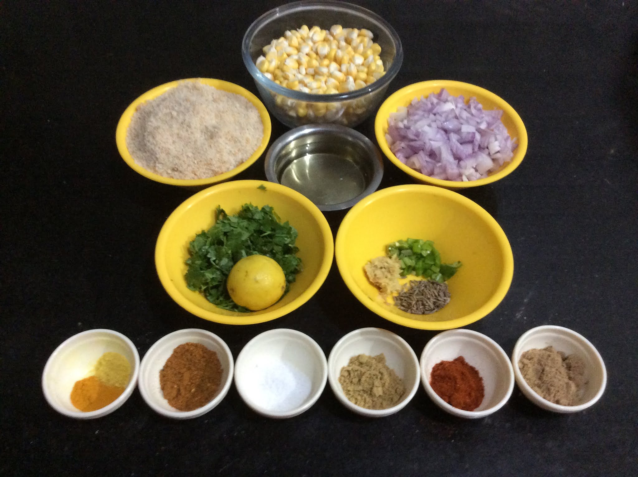 Let us now see the Ingredients, we need to make  SWEET CORN CUTLETS.